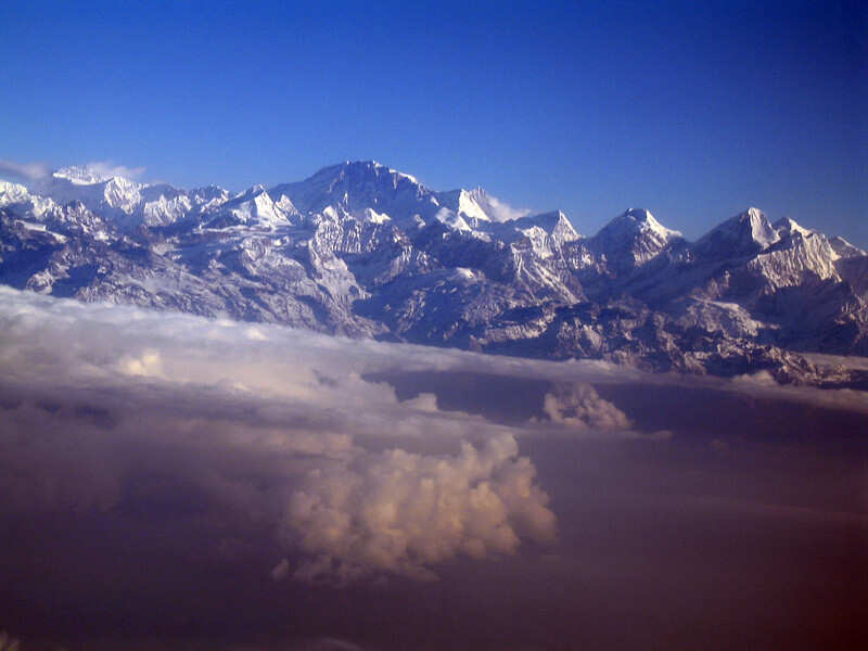 Взлет и восхождение в Гималаи,