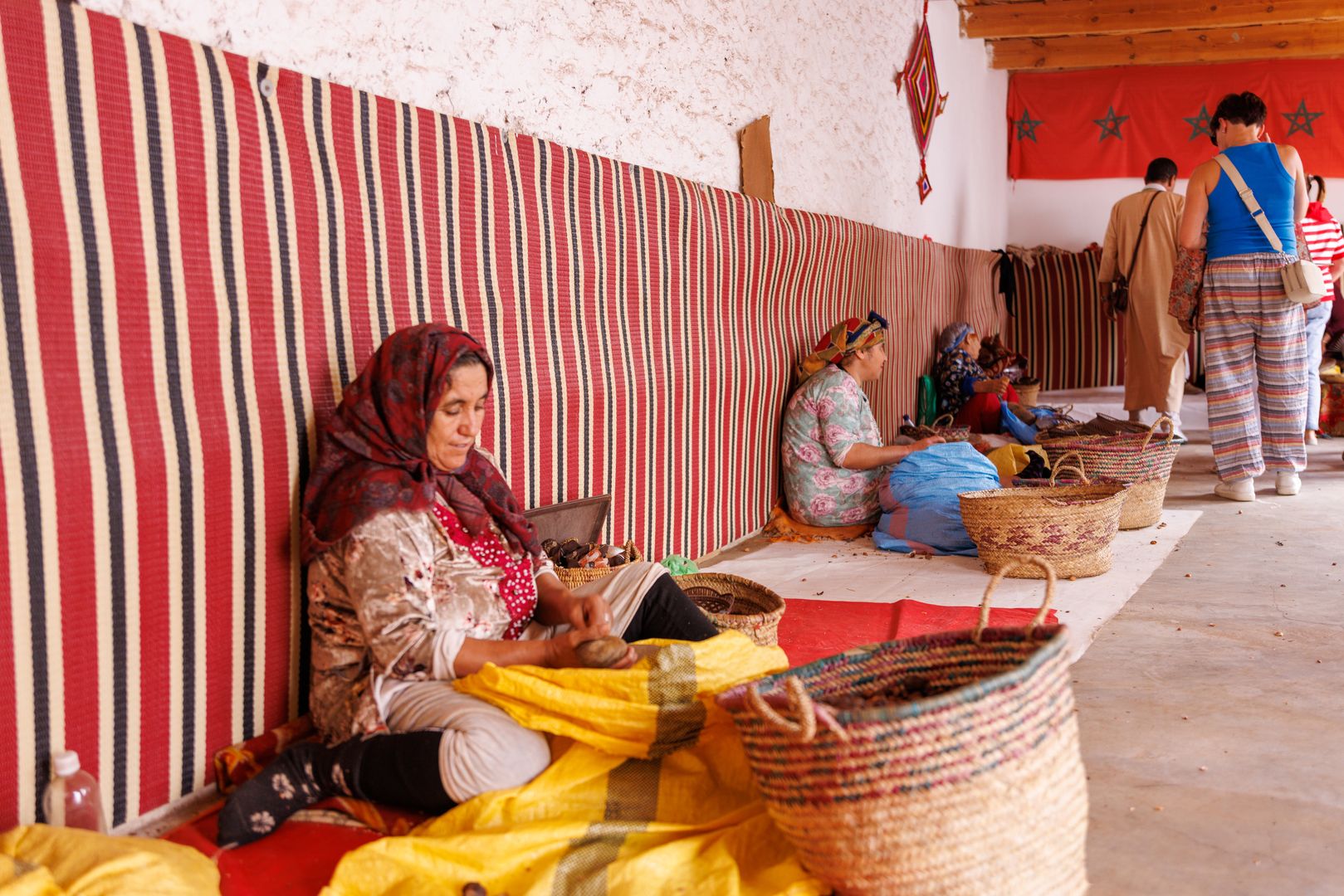 Приняв воздушные солнечные ванны, мы отправимся вновь на север Марокко вдоль побережья океана. В пути нас ждут аграновые фермы, где можно приобрести натуральные масла и косметику и обязательно увидим удивительных летающих коз! Конечно они не умеет летать, просто они умело лазают по деревьям в поисках аргановых плодов, ловко вскакивая на тонкие ветки и приступая к трапезе. По пути заезжаем на аргановую ферму.