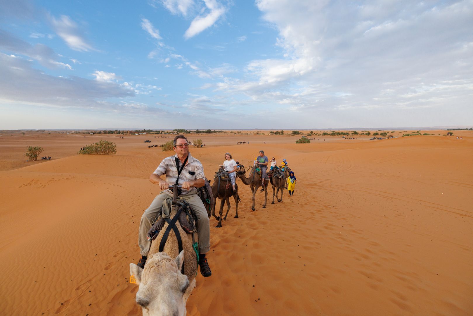 Ночь проведем в берберском лагере пустыни Сахара с ужином и фольклорной программой, куда доберемся на верблюдах. Размещение в Auberge Sahara Garden.