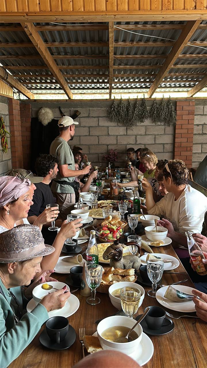 В завершение дня — тёплый осетинский ужин с горячими пирогами, мясом и душевными разговорами. Мы расскажем, что ждёт впереди, и познакомим вас с настоящим кавказским гостеприимством, которое согревает лучше любого пледа.