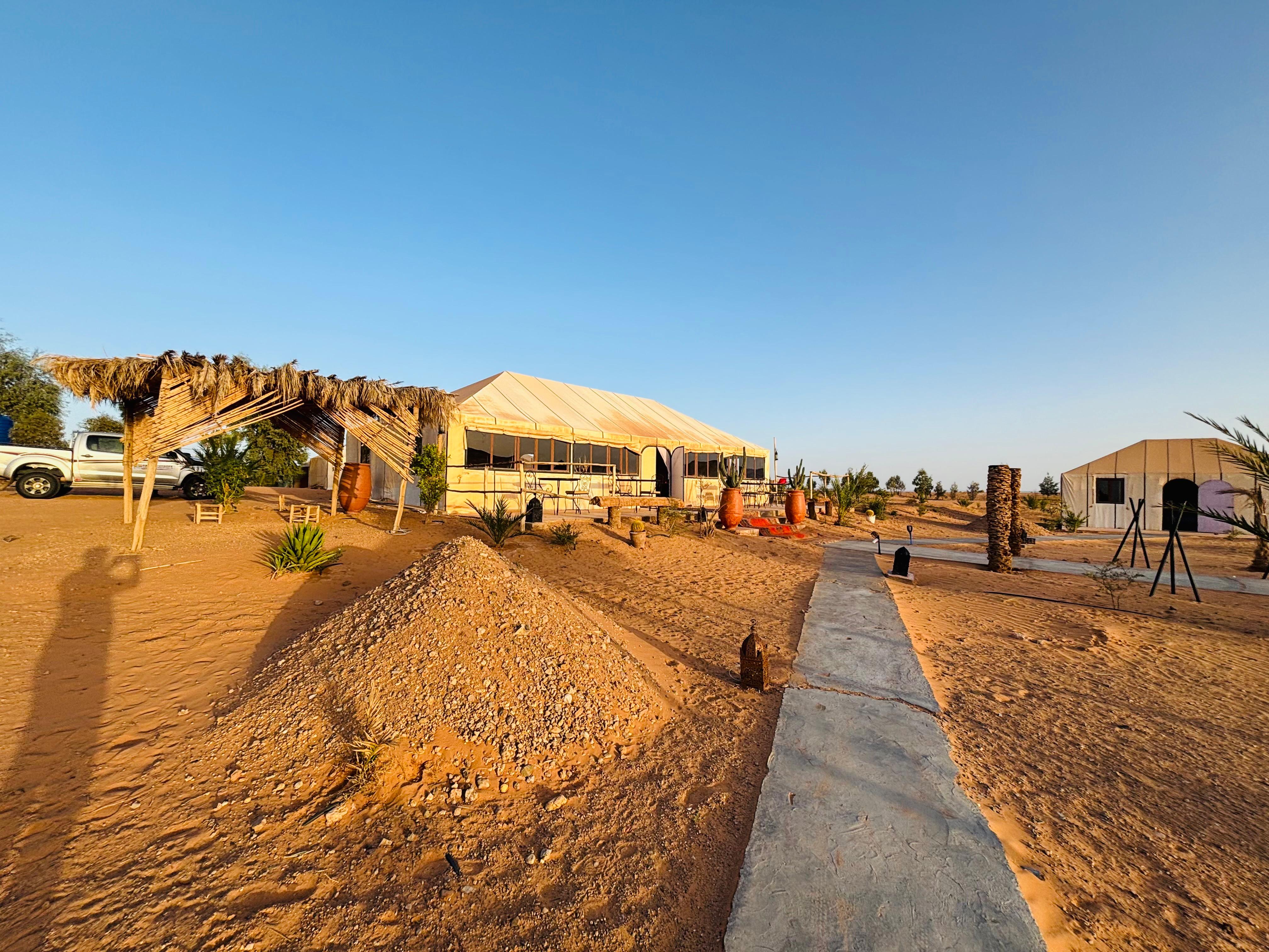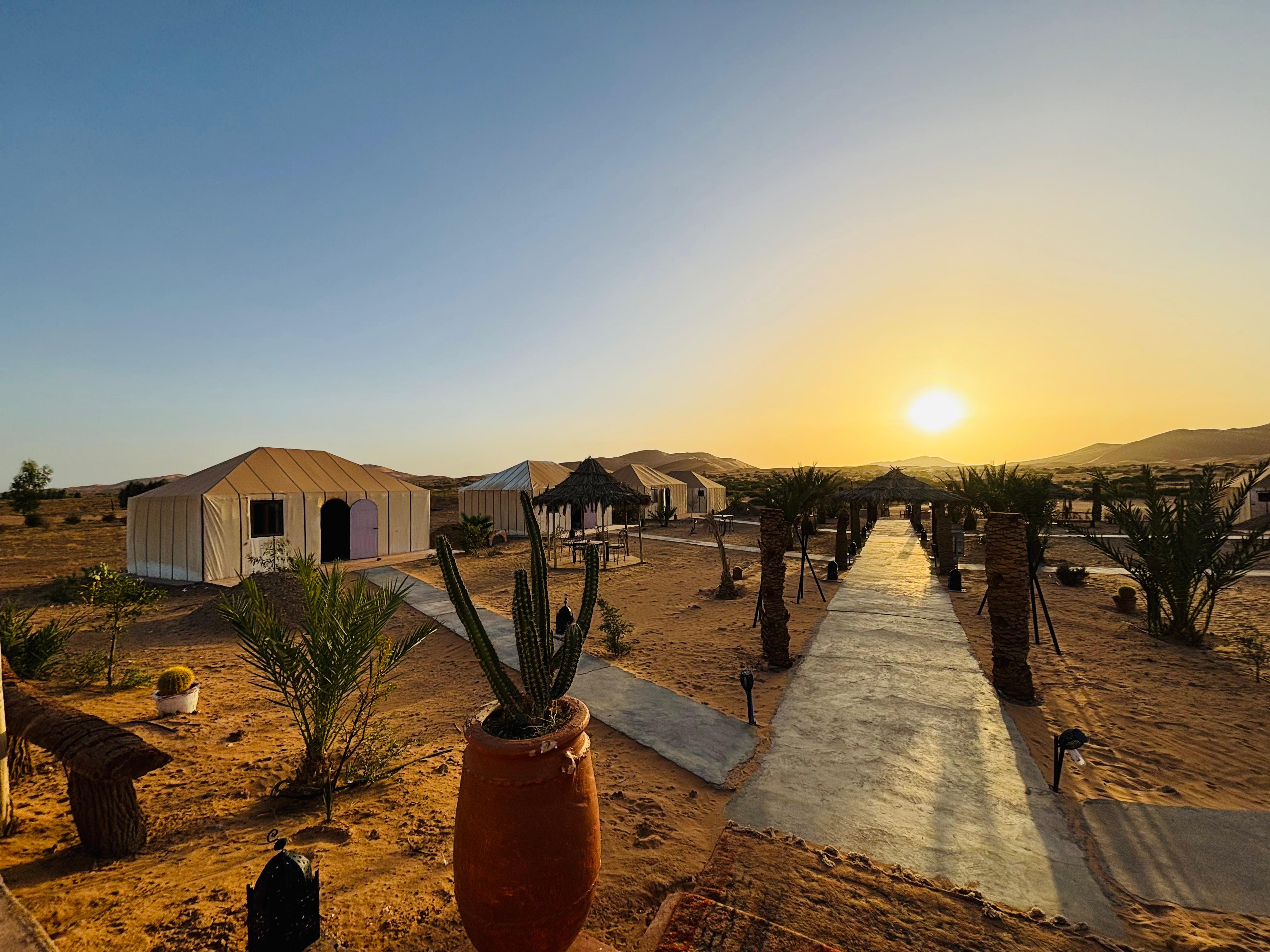 Arrival in Merzouga around 17:00 with a warm welcome. Transfer directly to your desert camp — time to relax, take a shower, and enjoy a peaceful moment in nature.
