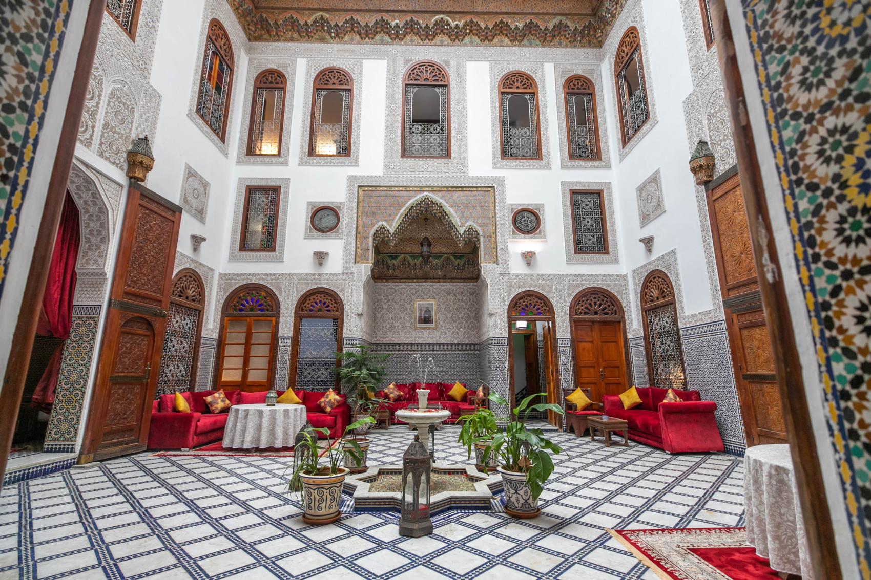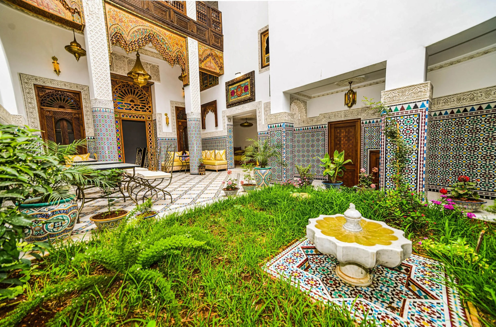 Фессанке, прибывшие очко в 14:00. Заселение в сад и время для отдыха. Конферация места за плечами. Сборное время для прогулки по медресе Фес. Была доставлена карточка медины и список искусственных мещ. Ужин и ночь в городе.