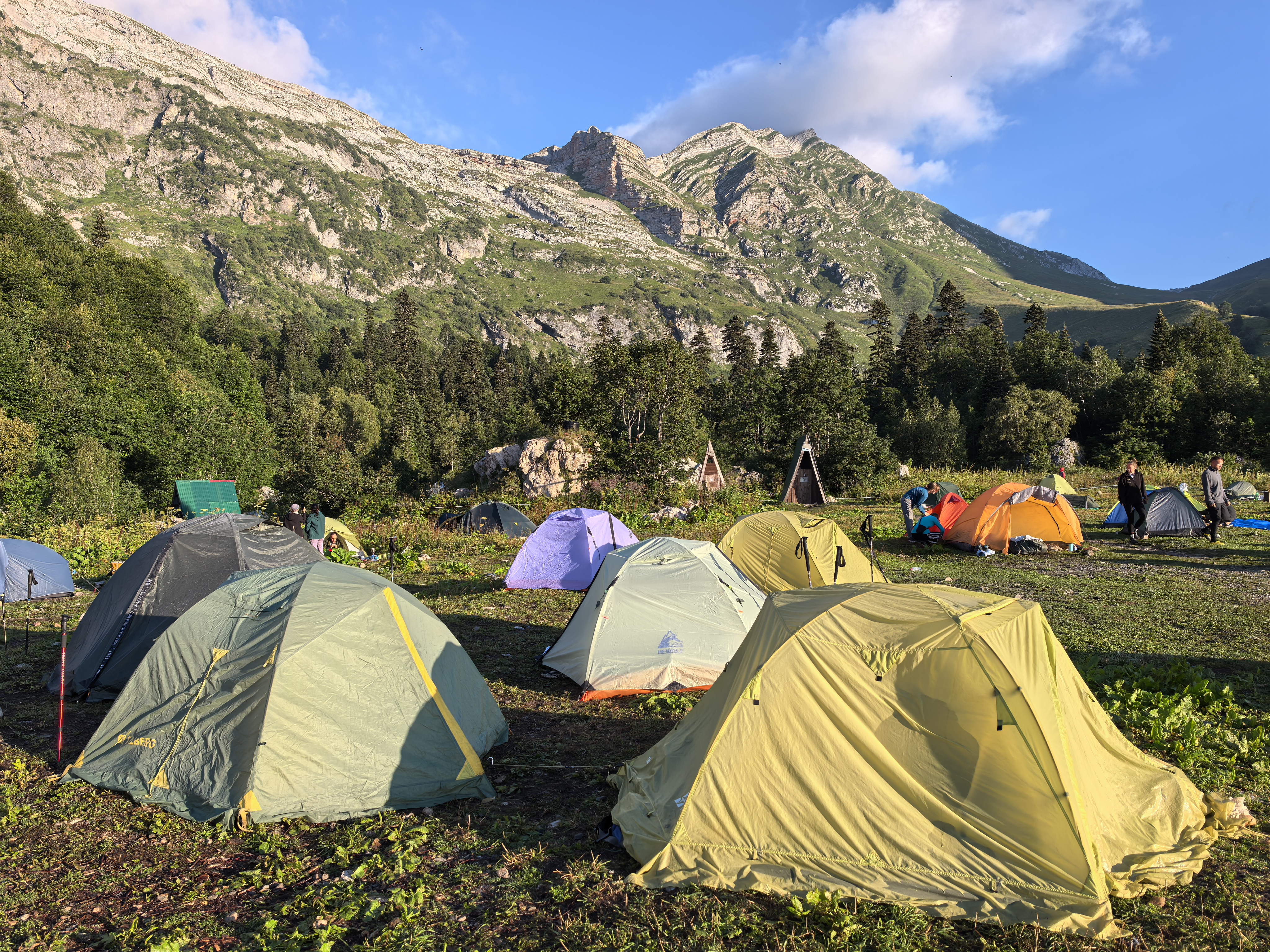 День: сборы снаряжения. Обед. Подъем на перевал Гузерипль. Переход на перевал Армянский. Спуск на приют Фишт.