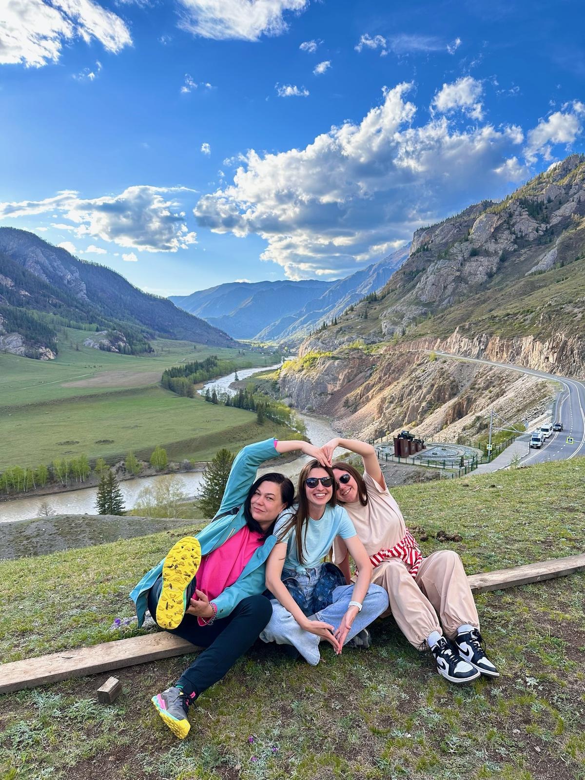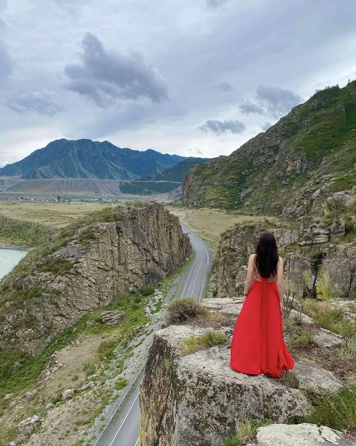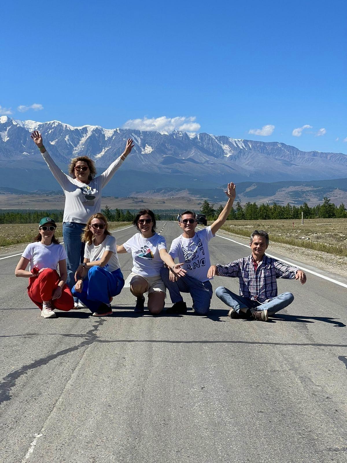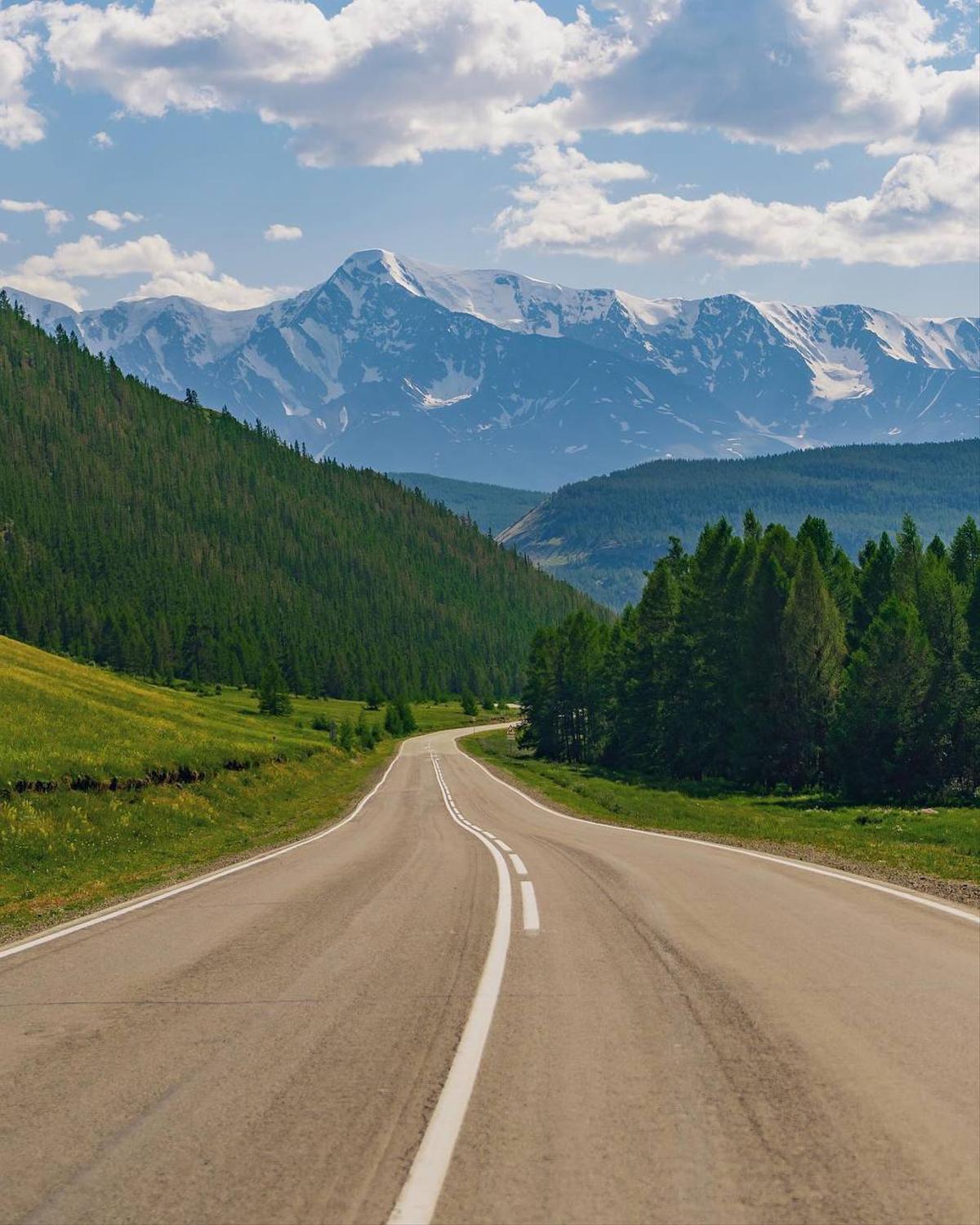 Насладившись видами, мы продолжим путь, постепенно открывая для себя южные районы Горного Алтая. Следующая остановка не заставит себя долго ждать - мы припаркуемся на знаменитой фотолокации с видом на величественный Северо-Чуйский хребет. Уютно расположившись посреди дороги, устроим фотосессию на фоне заснеженных ледников. Здесь получаются по-настоящему впечатляющие кадры - атмосферные.