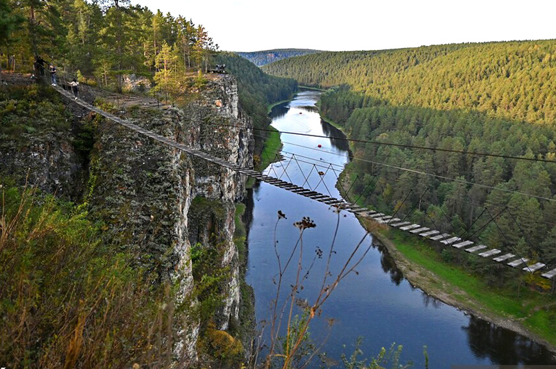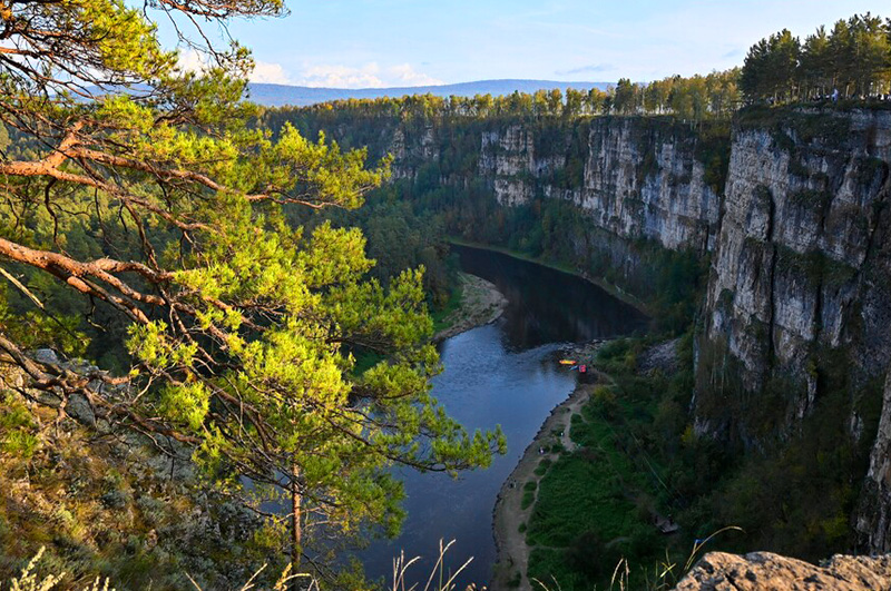 Айские притесы, пешеходная прогулка с выходом на смотровые площадки. Айские притесы — это главная фотозона Челябинской области, по-настоящему фантастическое место, которое никого не оставит равнодушным. Отвесные стометровые скалы, примыкающие к самой реке, впечатляют своими масштабами и сказочной красотой. С разных смотровых площадок открывается совершенно изумительный вид на долину реки Ай, пещеры, гроты и противоположный берег, покрытый густым, непроходимым лесом.