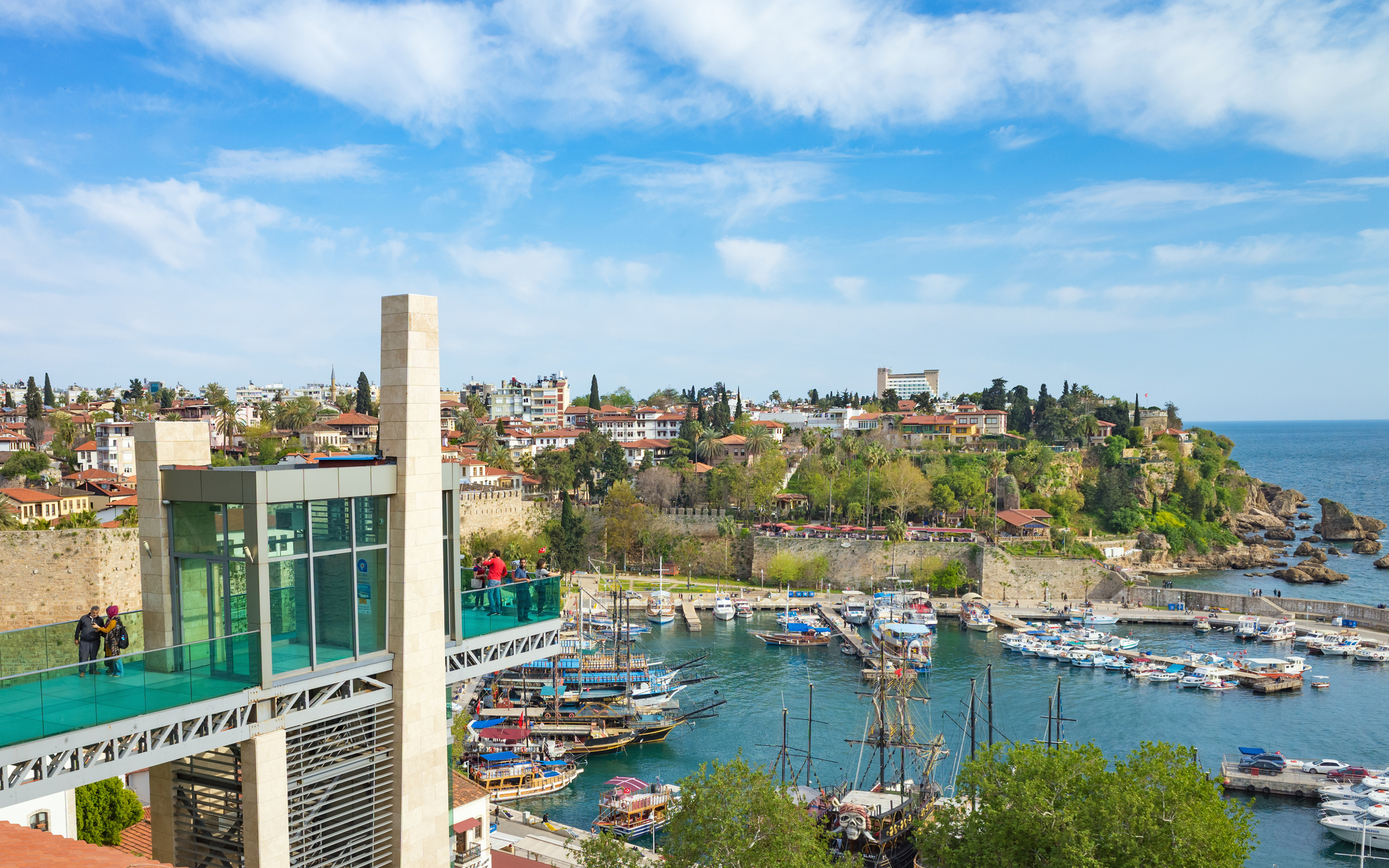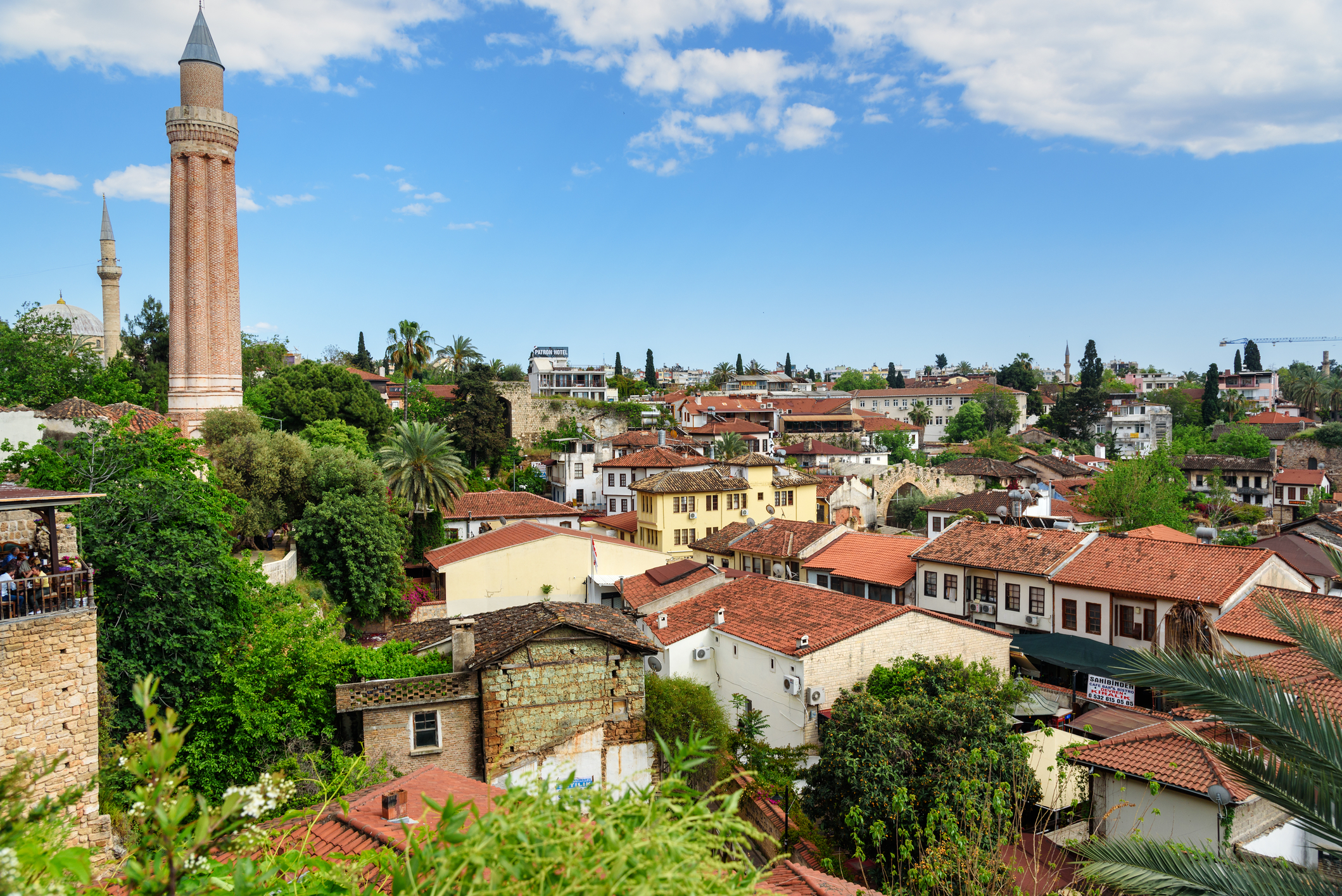 Здесь всё дышит контрастами. Узкие мощёные улочки Калеичи хранят тишину двух тысячелетий: римские ворота Адриана соседствуют с сельджукским минаретом Йивли, а из-за каждого угла свисают каскады розовых бугенвиллей. Смотровой лифт поднимает вас наверх — и вот перед вами распахивается панорама из красных черепичных крыш, крепостных стен и бескрайней бирюзы.