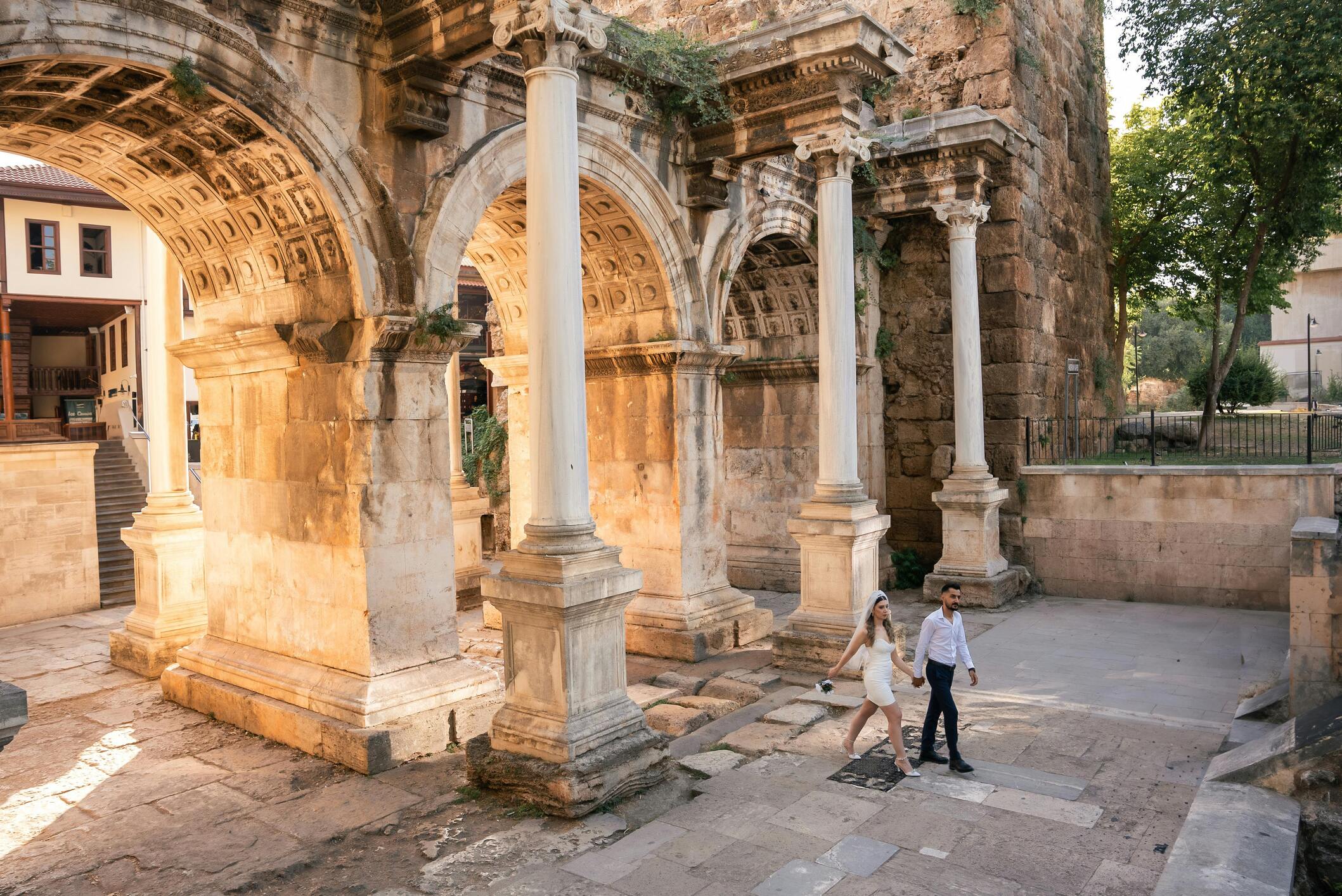 12:00 — Старый город Калеичи. Ступите в Старый город под сенью триумфальной арки — ворот Адриана. Дальше петляют мощёные переулки, где османские дома с резными эркерами соседствуют с византийской каменной кладкой. Дворы утопают в цветах и дышат ароматом свежесваренного кофе — здесь прошлое становится настоящим.