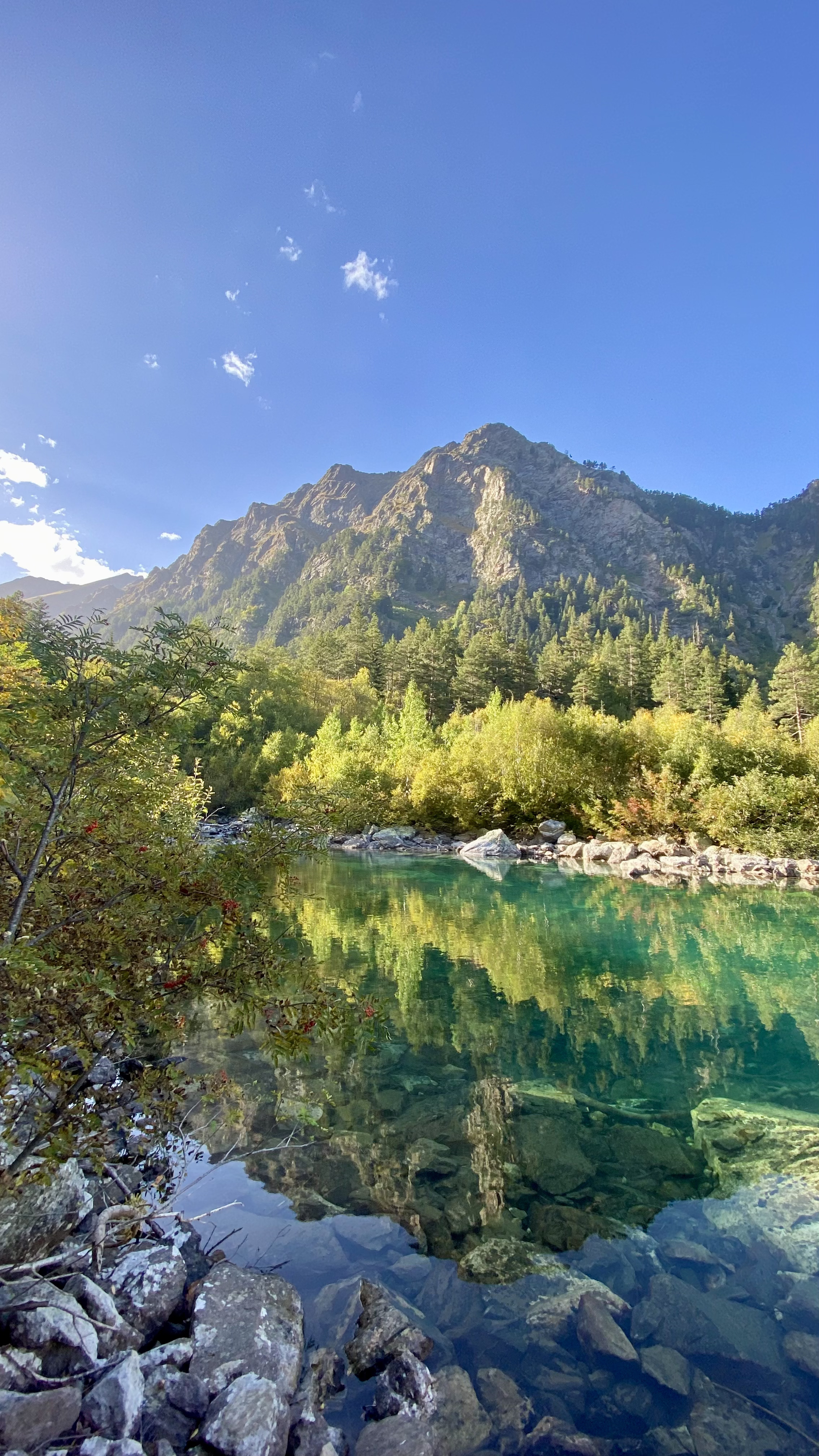 Далее наш путь лежит по одному из самых красивых треккинговых маршрутов. Для подготовленных путешественников, трек будет не сложным. Тропа огибает порожистые реки и уводит вглубь векового хвойного леса. Воздух здесь наполнен ароматом смолы и свежестью, а мощь скалистых пиков заставляет замереть сердце. Постепенно лес отступает, сменяясь каменной осыпью — верный знак, что мы приближаемся к цели.