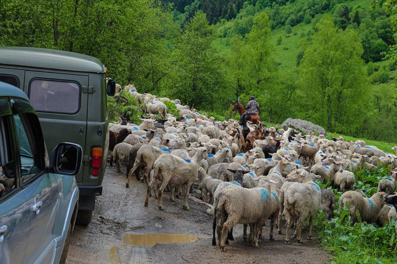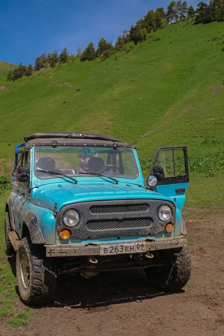 Утром сядем на транспорт повышенной проходимости типа Уаз и отправимся к подножью горы София, чтобы подняться на 1300 м и увидеть голубые глаза Архыза - знаменитые Софийские озера!
