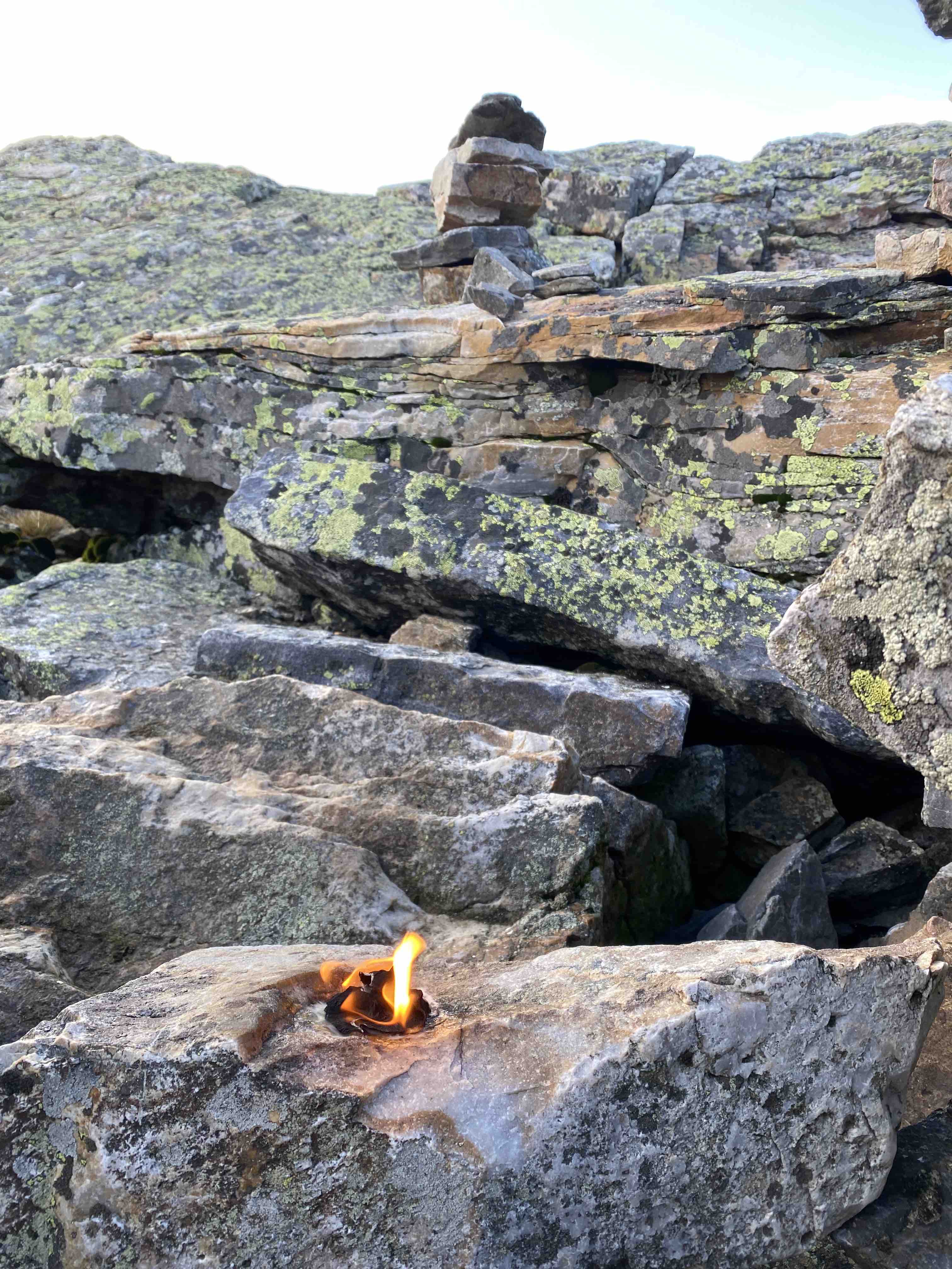 Наверху простор и небо, бывает сильный ветер и точка момента, где всё лишнее растворяется, мы проведём ритуал благодарения и подношения, будет время побыть наедине.