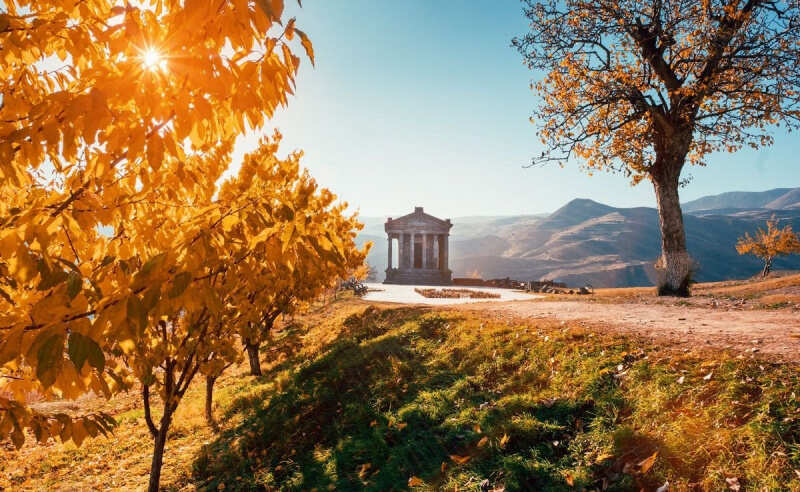 Этот маленький кусочек Греции в сердце Армении невероятно красив среди окружающих его склонов! Там же спустимся к местному природному чуду - живописным базальтовым столбам «Симфония Гарни».