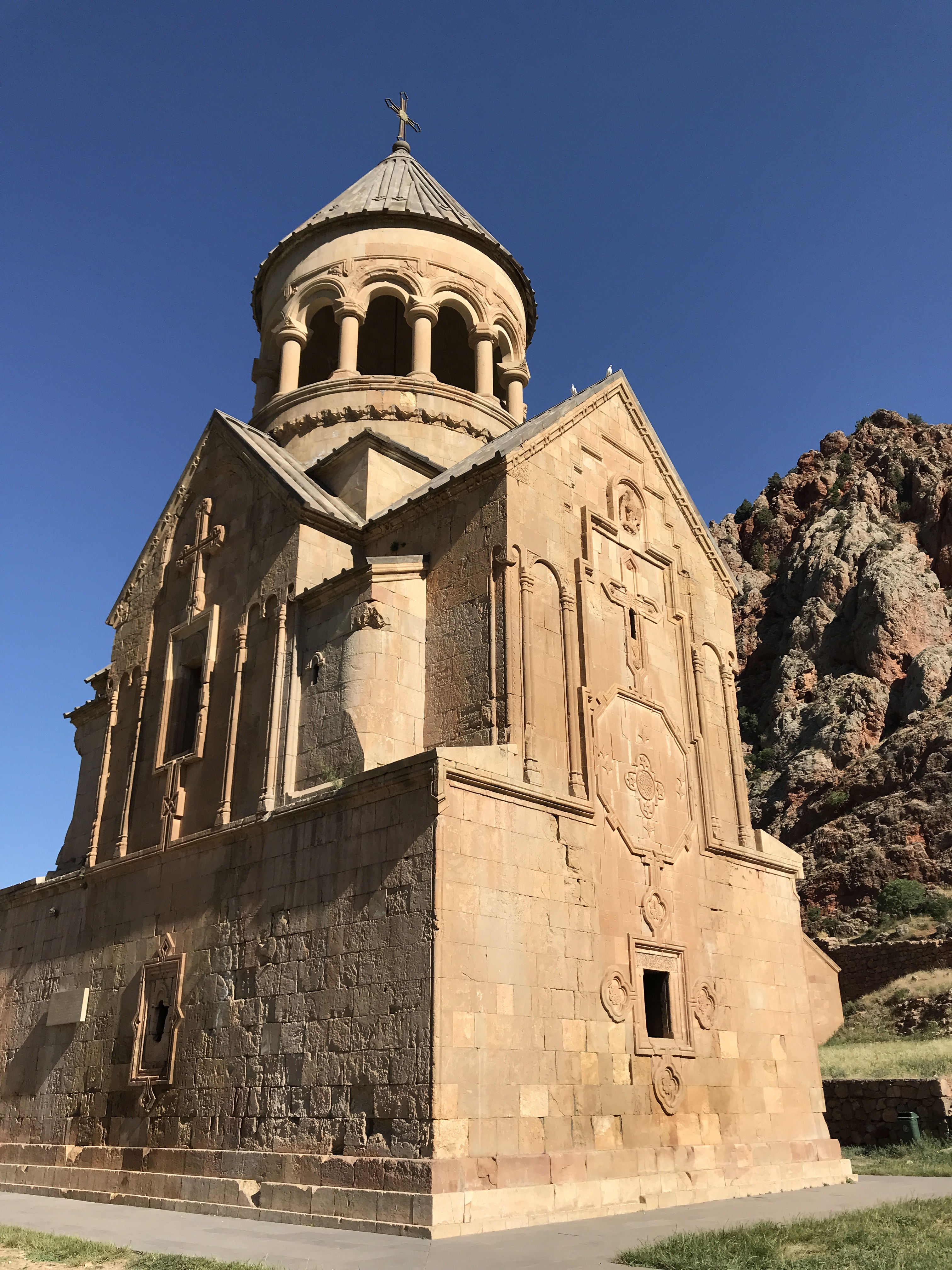 Сначала мы перенесёмся в таинственное ущелье, в розовых скалах которого прячется Нораванк уникальный монастырский комплекс, построенный в Xiii-Xiv веках. Мимо знаменитой церкви Буртелашен, которую построил архитектор Момик, проходит тропинка, по которой утром и вечером к реке спускаются безоаровые козлы. Увидеть их настоящее везение!