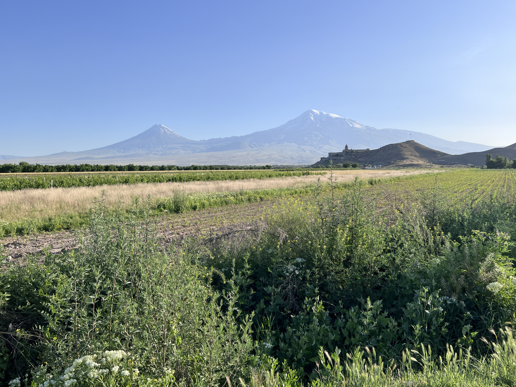 С утра едем в Араратскую долину к холму Хор Вирап. Именно с него открывается шикарный вид на священную гору Арарат. К сожалению, она сейчас находится в Турции, но армяне всегда считают ее своей. Зайдем в монастырь Хор Вирап. Кто захочет, тот спустится в ту самую яму-тюрьму, где 13 лет провел в заточении святой Григорий Лусаворич.
