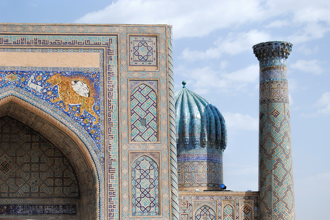 Медресе Шер-Дор украшенное изображениями тигров, символизирующих силу и мощь.