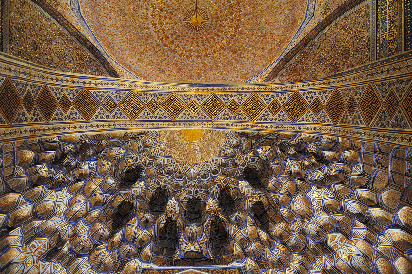 Медресе Тилля-Кари поражающее своей золотой отделкой и изящной росписью.