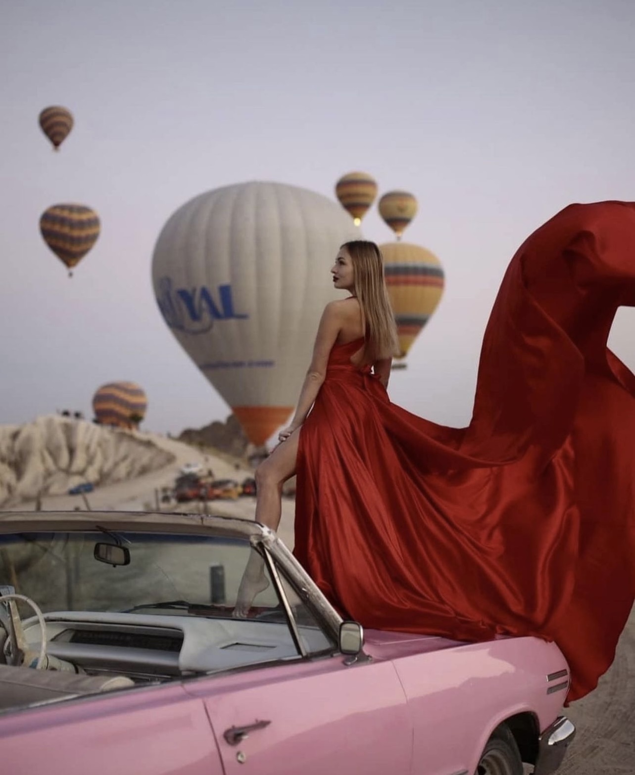 Это утро будет возможно еще ярче по эмоциям, ведь тебя ждет невероятная профессиональная фотосессия с кабриолетом и воздушными шарами на рассвете. Сначала мы побываем прямо в гуще событий на площадке, где взлетают воздушные шары, затем прокатимся среди взлетающих шаров на кабриолетах, завершим остановкой на смотровой в долине любви и фото в платьях.