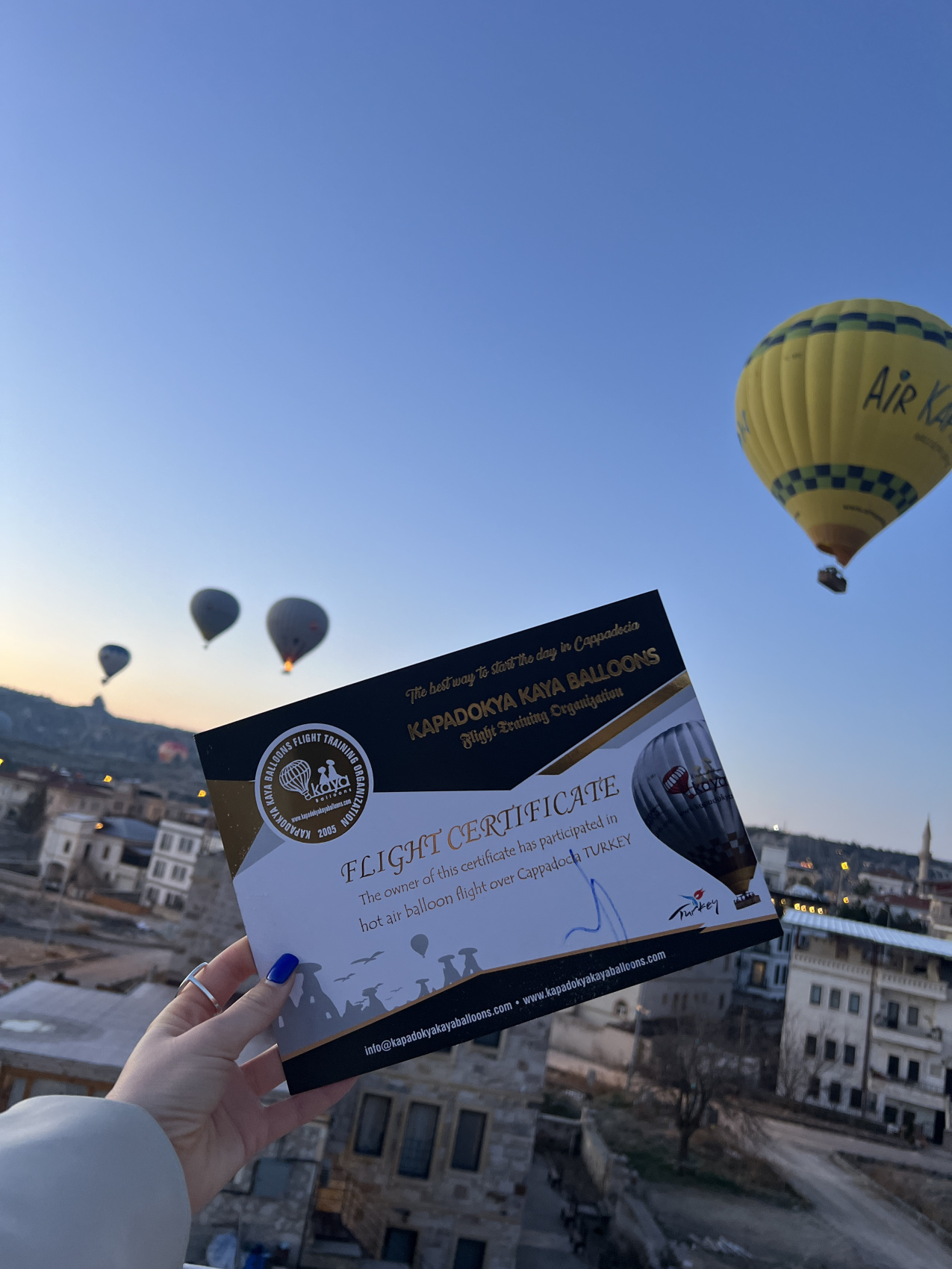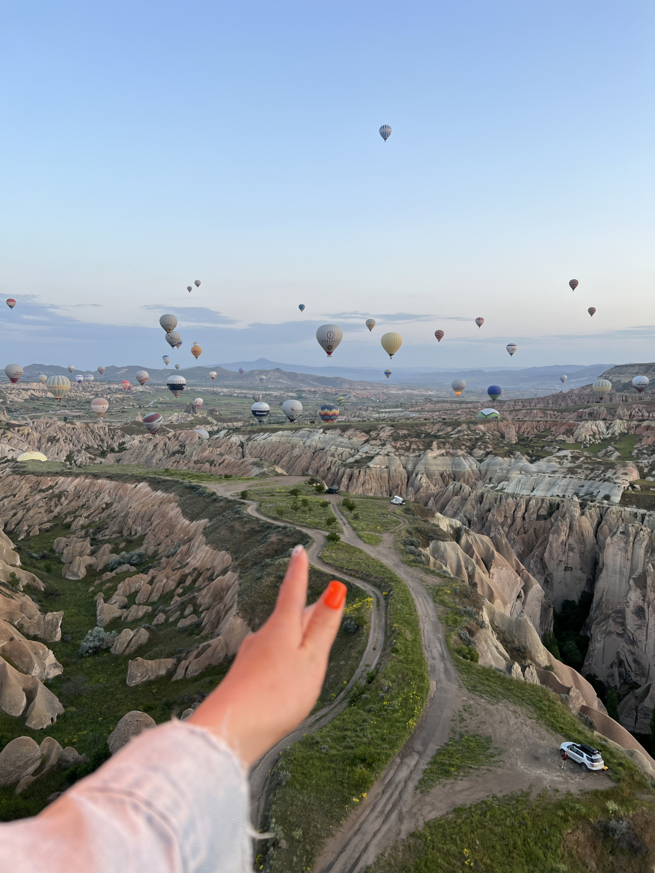 Просыпаемся очень рано утром и едем исполнять мечту! Полеты на воздушных шарах проходят только на рассвете, только представьте, как вы около часа парите в небе, видите восходящее солнце, Каппадокию и ее пейзажи с высоты птичьего полета, пролетаете по долинам на расстоянии вытянутой руки... Это чувство не передать словами их можно только прожить.
