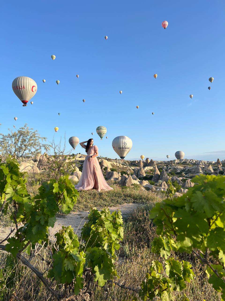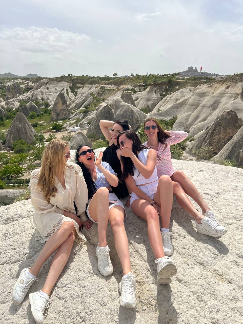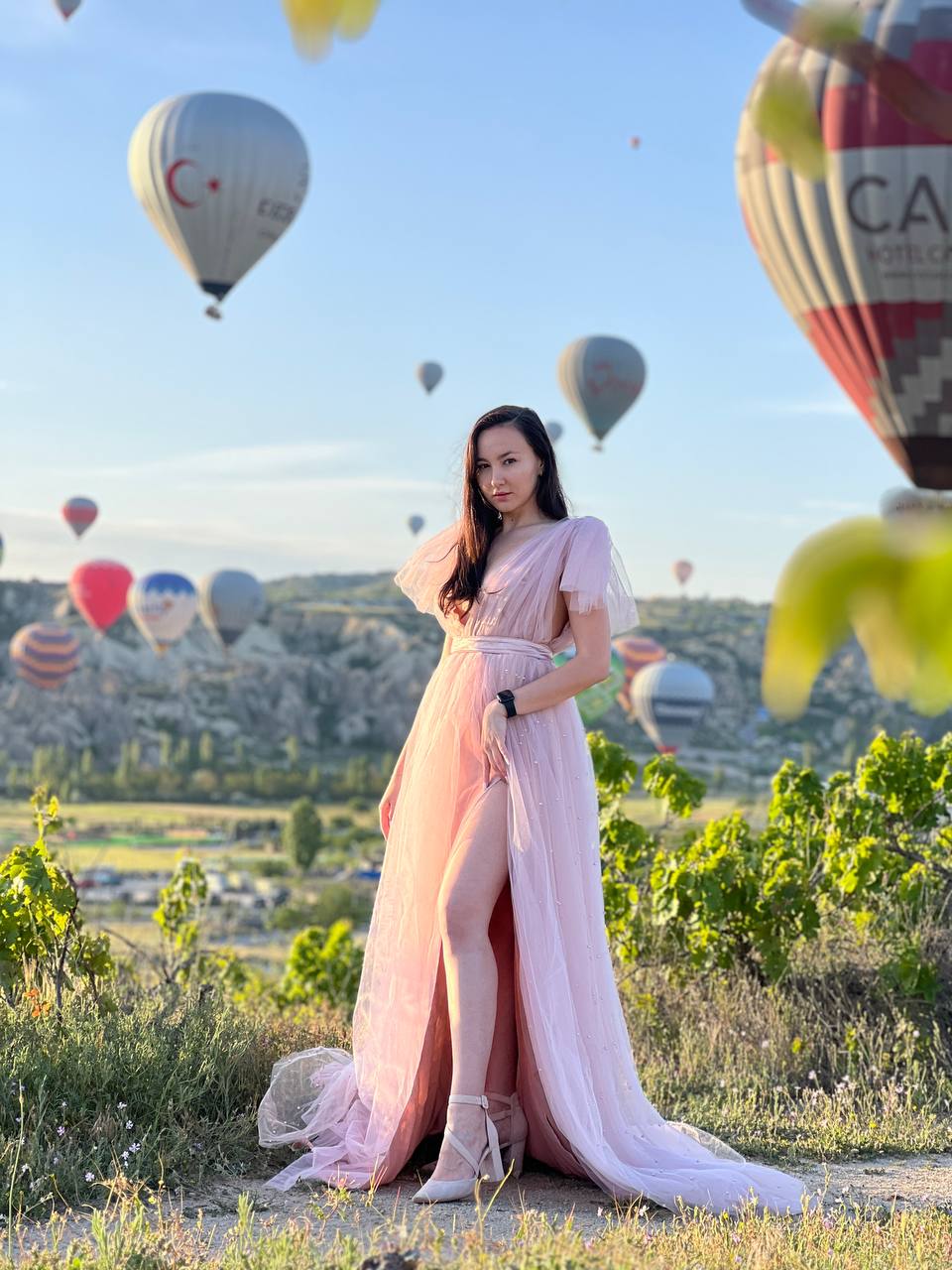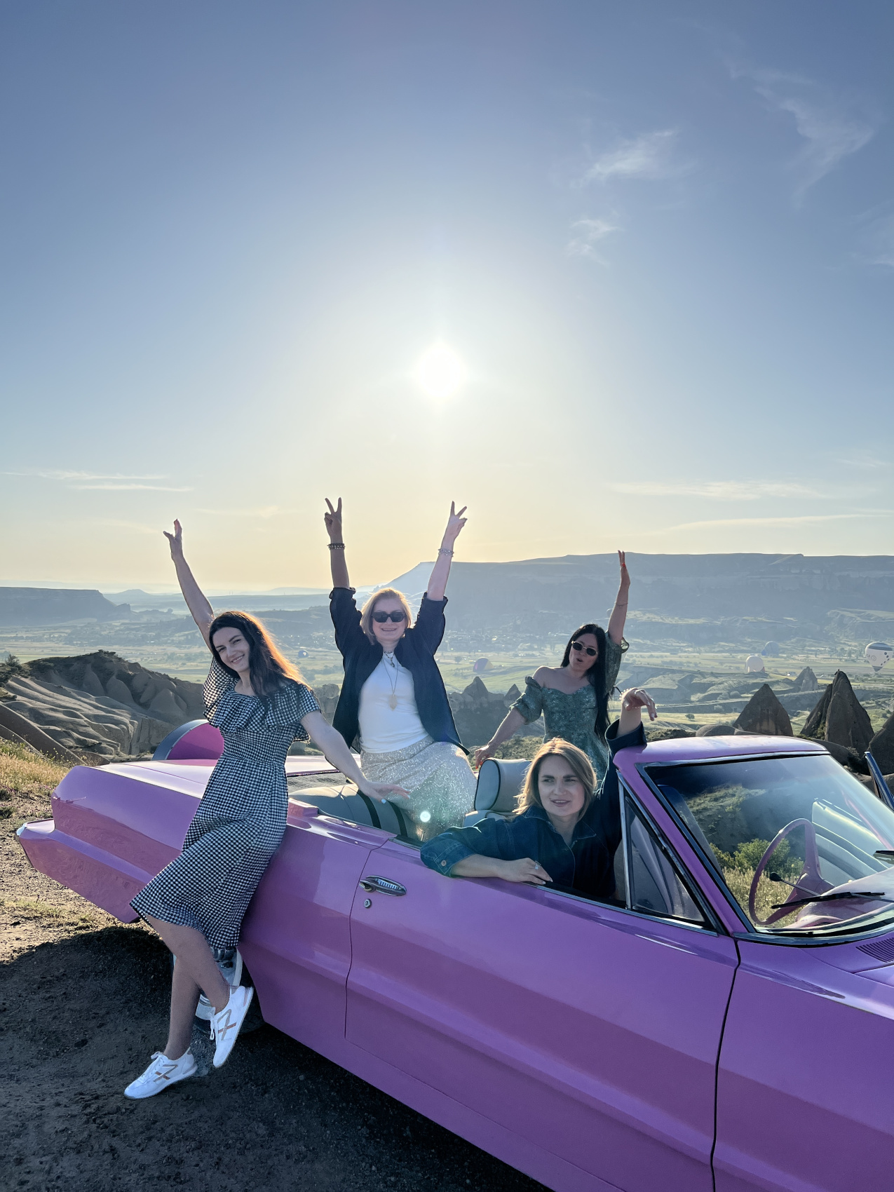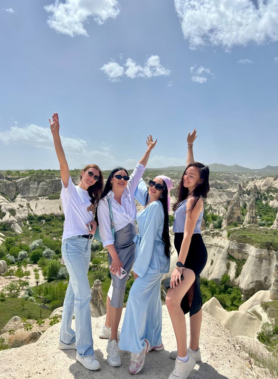 фото девичник в Каппадокии - это невероятные впечатление от долин Гёреме и полета на воздушном шаре! Устроим незабываемую красивую фотосессию с профессиональным фотографом, кабриолетами и летящими платьями!