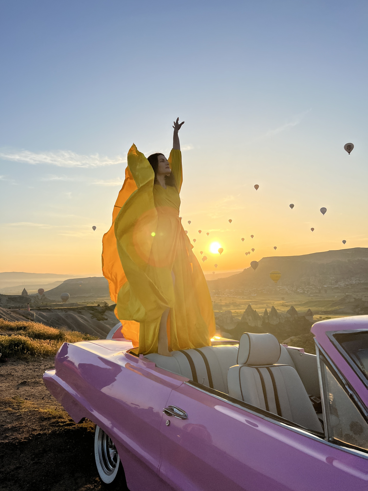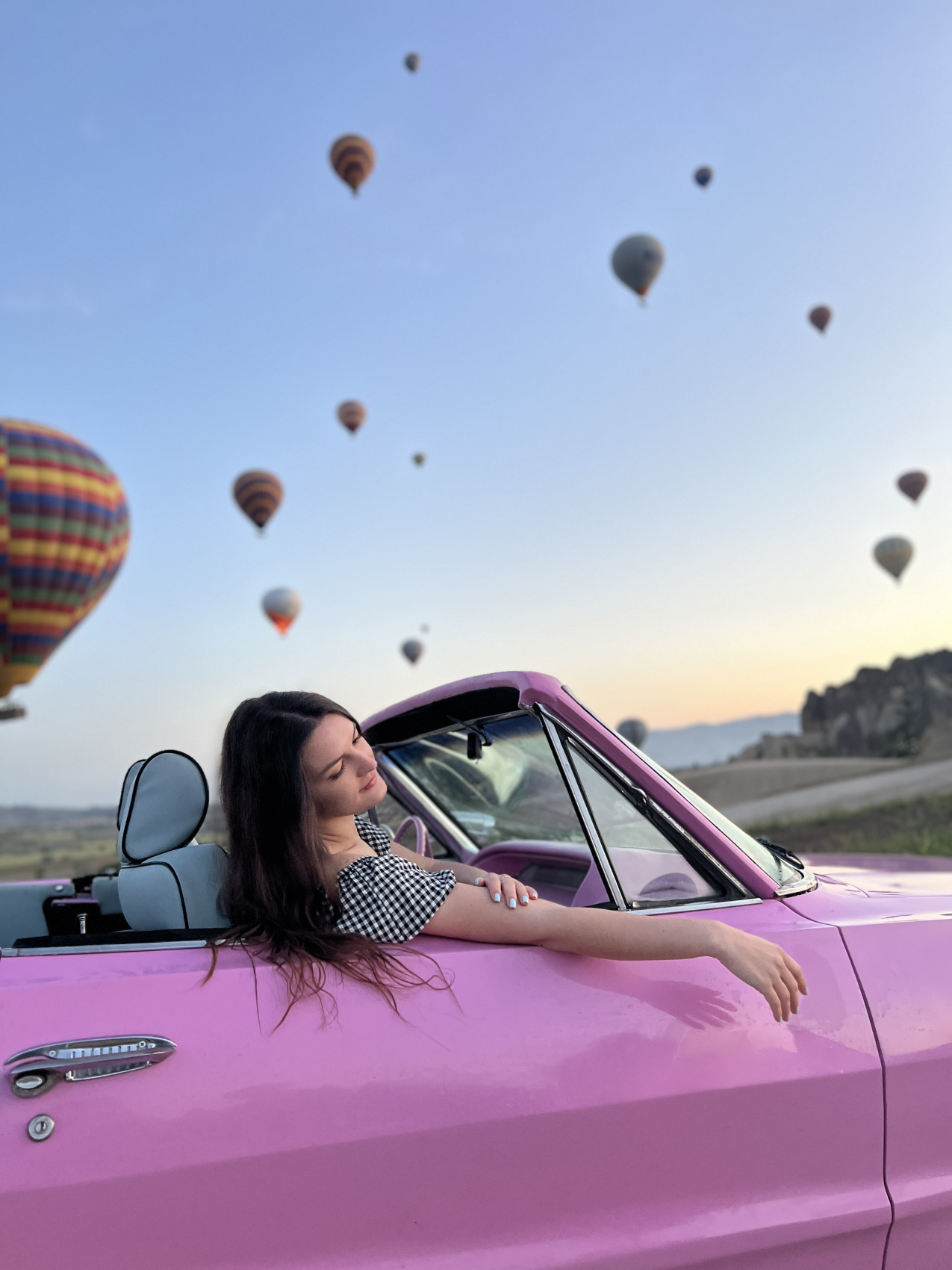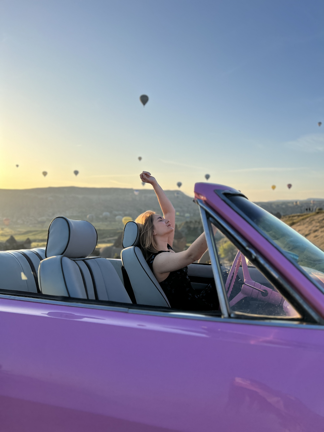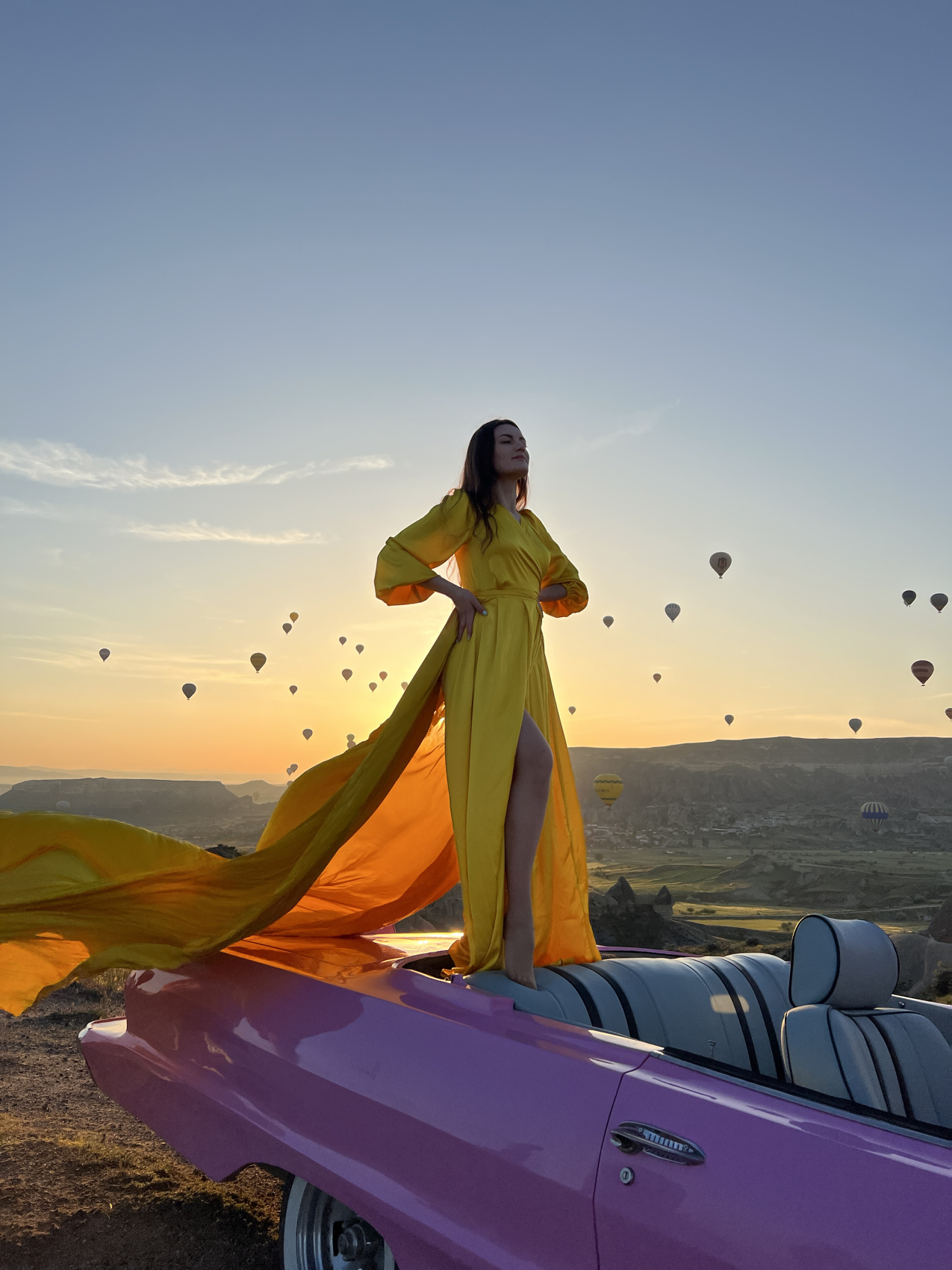 Это утро будет возможно еще ярче по эмоциям, ведь тебя ждет невероятная профессиональная фотосессия с кабриолетом и воздушными шарами на рассвете. Сначала мы побываем прямо в гуще событий на площадке, где взлетают воздушные шары, затем прокатимся среди взлетающих шаров на кабриолетах, завершим остановкой на смотровой в долине любви и фото в платьях.