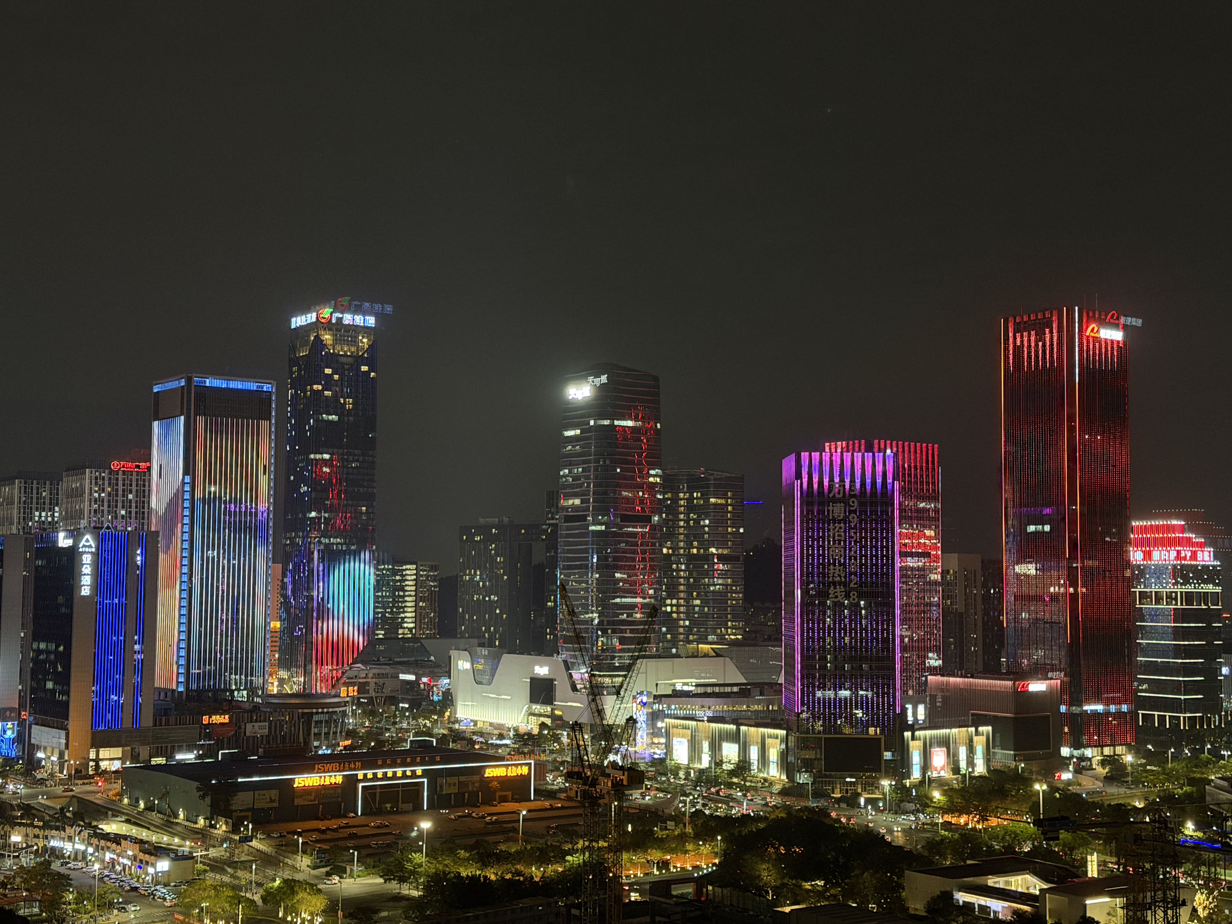 С высоты смотровой площадки открываются захватывающие виды на ночной город, подсвеченные мосты и небоскрёбы — яркий контраст после тихих улочек старого Шавана.
