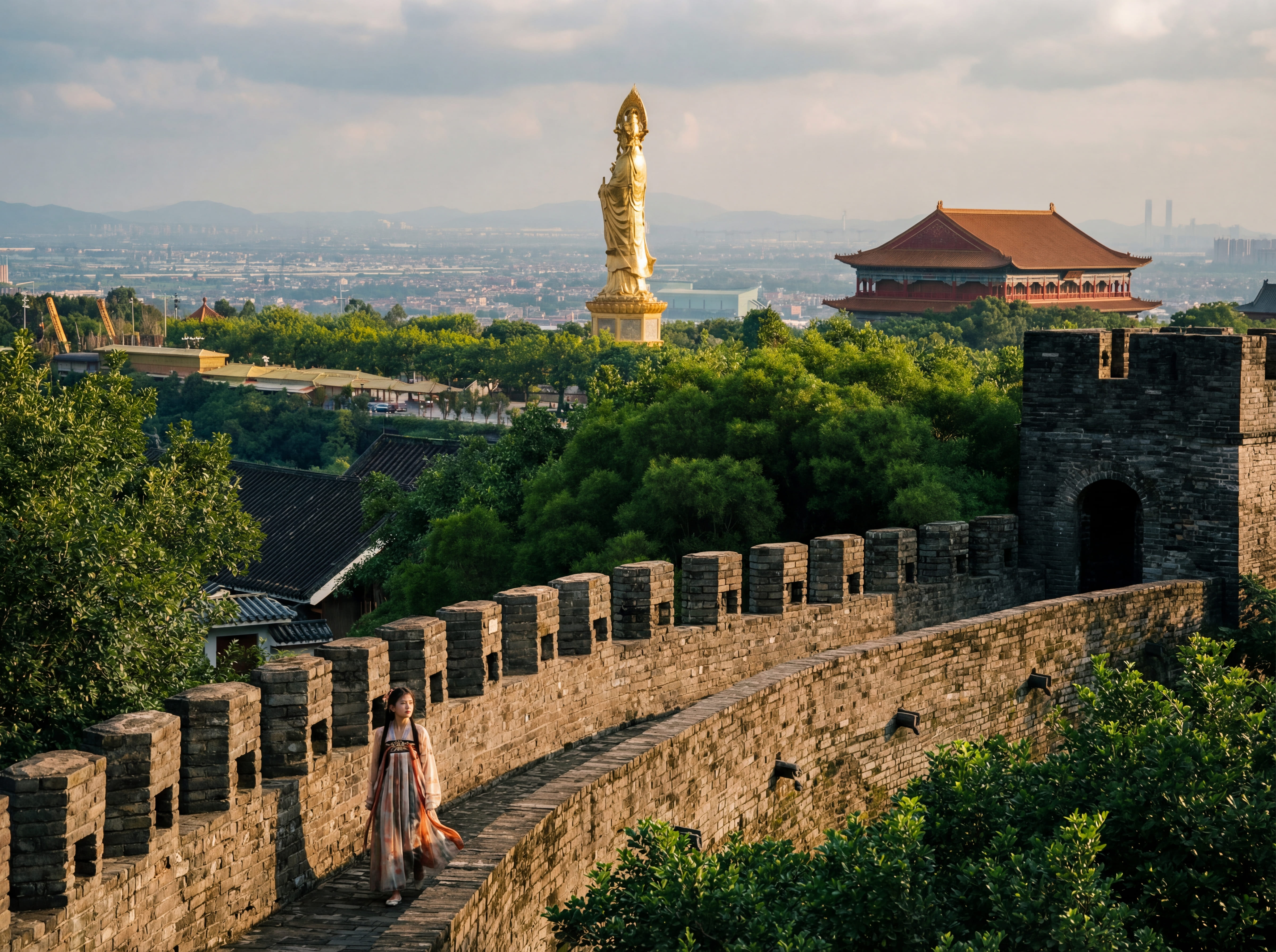 Священная гора с огромной 40-метровой статуей Гуаньинь, древними храмами, пешеходными тропами и потрясающими видами на море и город.