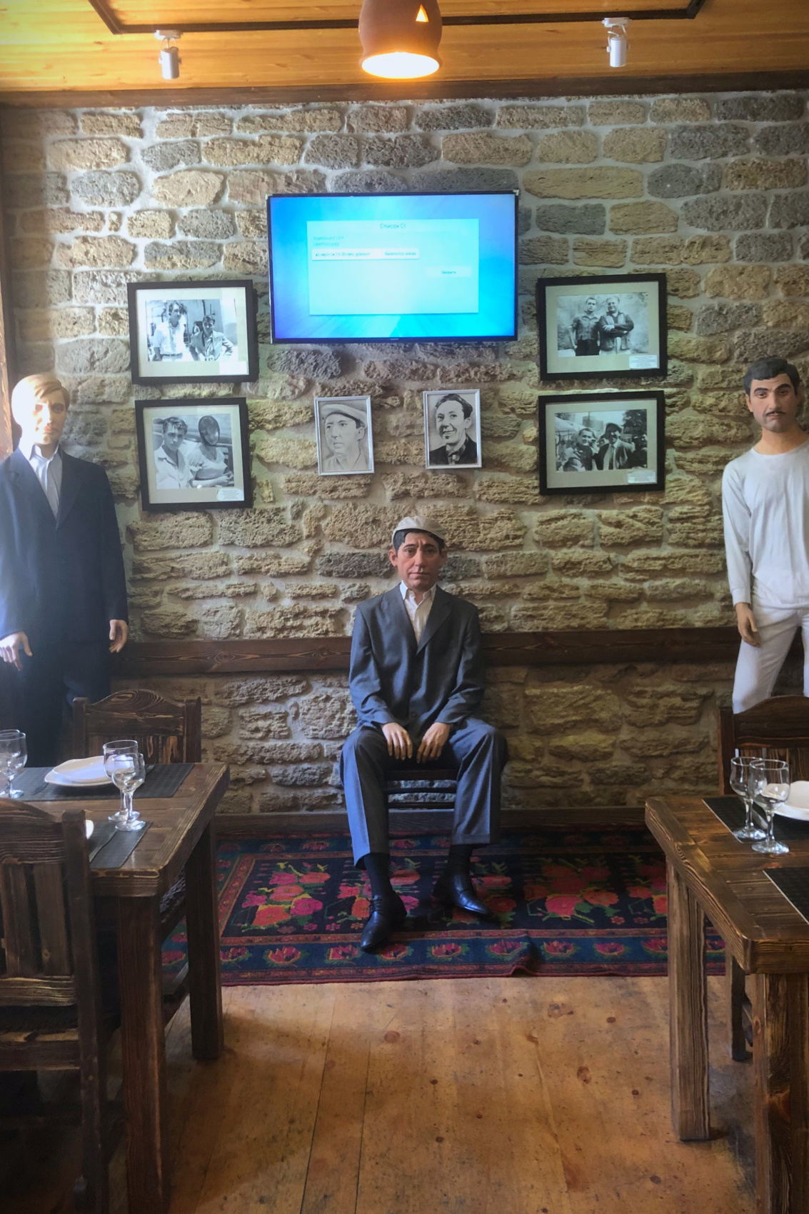 Пример обеда: чобан-салат, мангал-салат, Фисинджан-салат, рулет из баклажана, суп Мерджи (из чечевицы), долма (фарш в виноградном листе), садж из телятины, компот, вода.