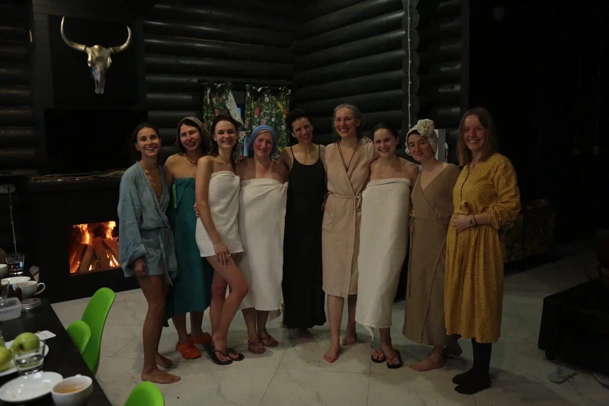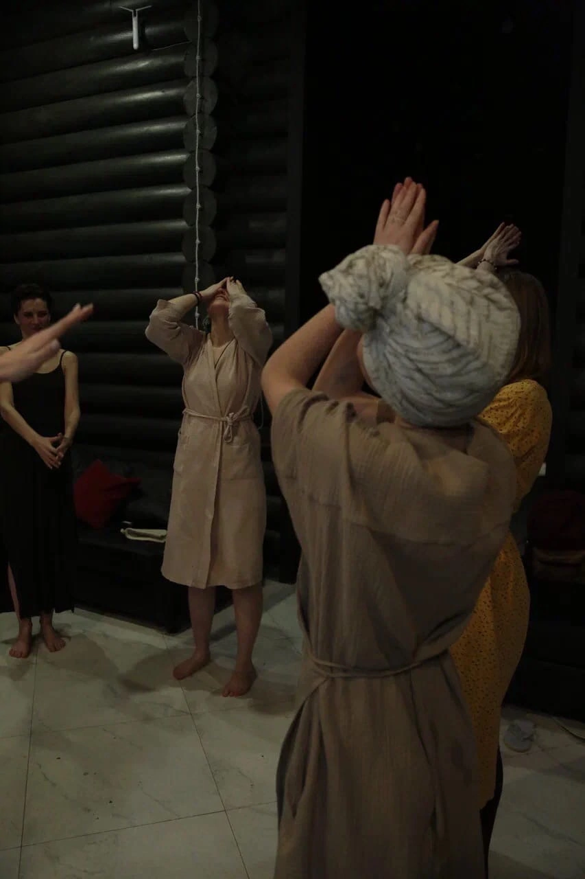 Роскошная банька в Павловске с уникальной печью из нефритовых камней, парение с профессиональной пармастерицей, мягкая практика женской йоги, освобождение от стресса через звук, раскрепощение тела в танце, сброс напряжения через тряски, релаксация с исцеляющими образами.