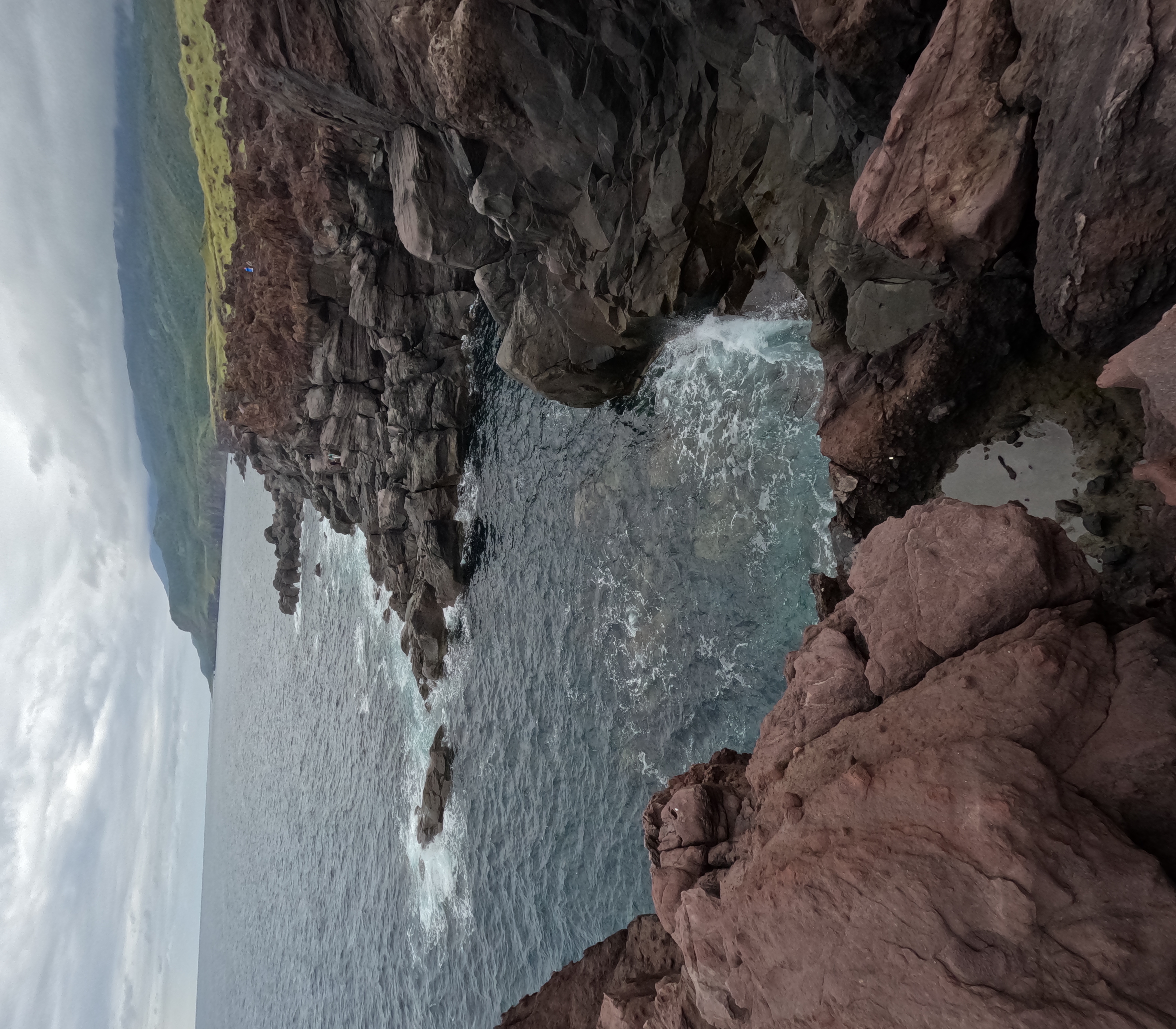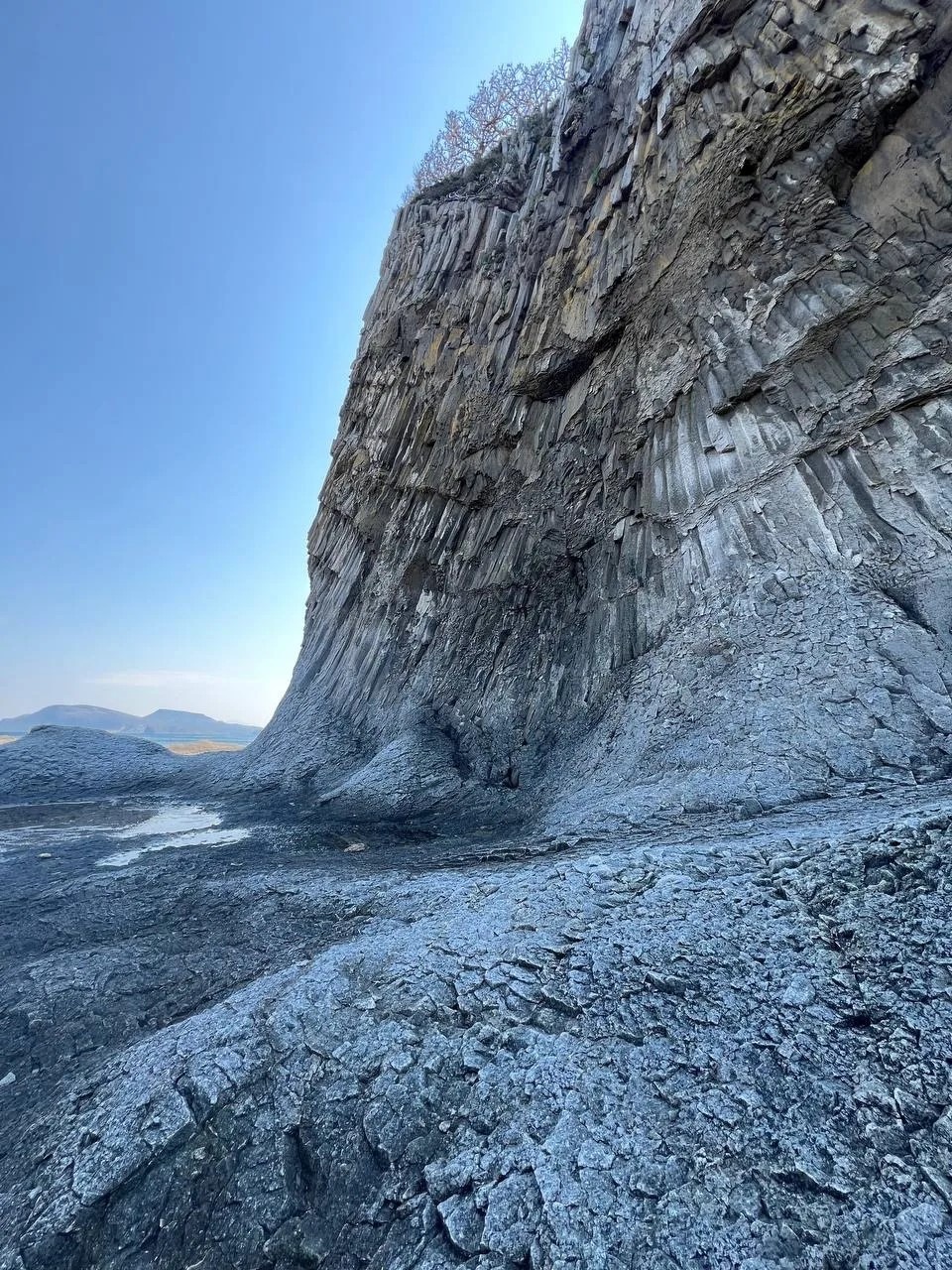 По прошествии веков базальтовый массив поднялся из глубин океана, а природа и время превратили застывшую породу в высокий (до 50 м в высоту) отвесный мыс.