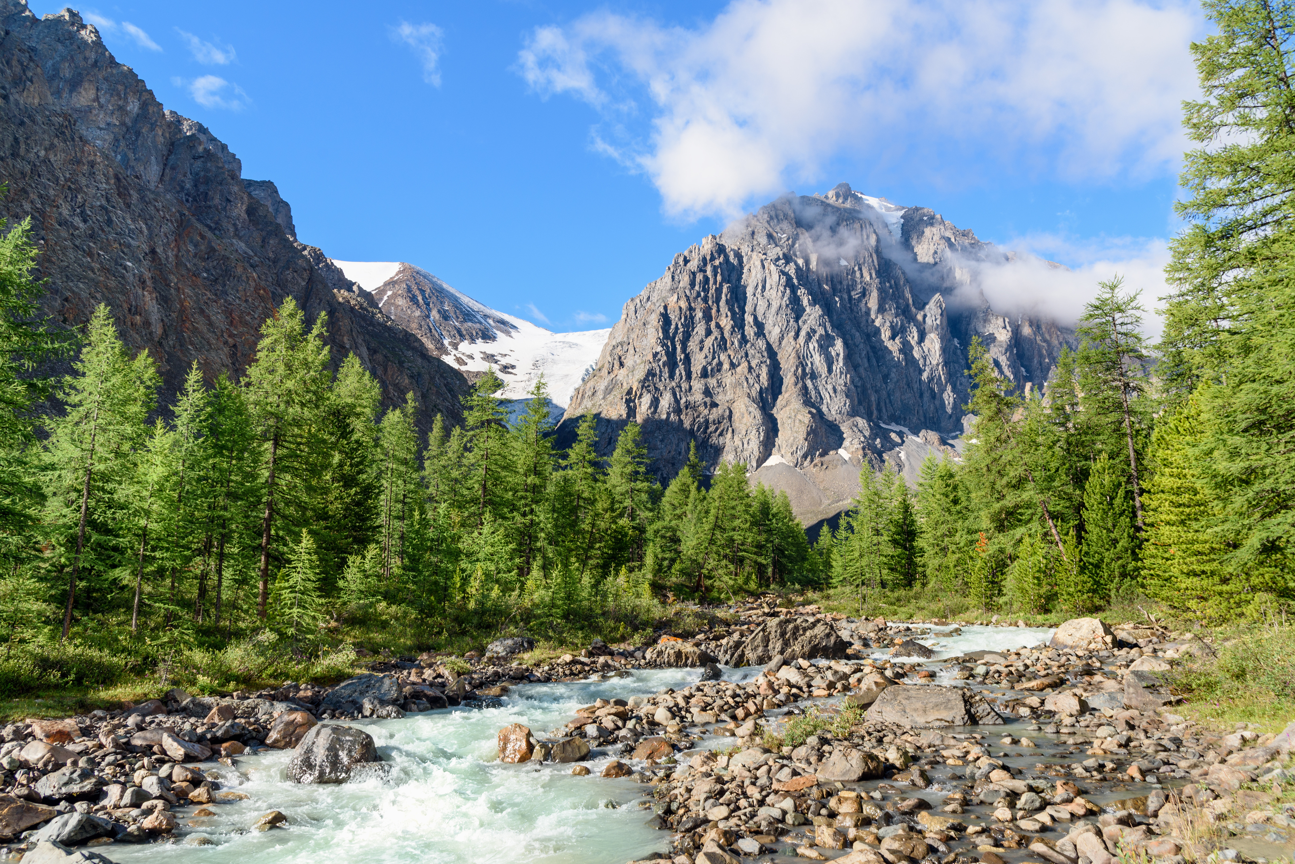 День радиальных прогулок в горах. Маршрут выберем по силам, желаниям и состоянию группы. Вариантов много, и каждый из них хорош: прогулка к Долине Гномов 1 км (1-2 часа), по долине реки Актру 5-7 км (4-5 часов), на ручей Водопадный и ледник Малый Актру 3 км (2-3 часа). Если нам повезёт, на леднике увидим небольшие пещерки, что образуются при таянии льда по краю. Истончаясь, стены пещер пропускают свет и приобретают изумрудно-голубой оттенок. Выглядит это потрясающе, будто в царстве Снежной Королевы, и шикарно смотрится на фото. Эта красота не всегда безопасна, но не волнуйтесь, в опасные пещеры инструкторы никого не пустят даже на минутку. (Переход налегке от 2 до 14 км, в зависимости от выбранного маршрута).