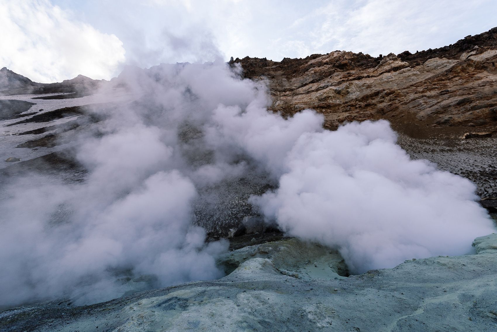 Мини-Долина гейзеров (или Дачные горячие источники) находится в окрестностях Мутновского вулкана, у подножия сопки Скалистой. Для того чтобы источники раскрылись во всей красе, потребуется преодолеть небольшой подъем и осуществить не сложный спуск в ущелье.. Маршрут не требует специальной физической подготовленности и снаряжения, а в ходе путешествия у вас будет возможность принять приятные оздоровительные ванны в термальном источнике.Долина представляет собой активное фумарольное поле. Фумаролы это трещины в земле, через которые наружу выходят горячие газы. Кипящие и пульсирующие источники усыпали склоны и овраги на протяжении километра. Зрелище впечатляющее и необычное земля, словно живой организм, буквально бурлит, парит и взрывается горячим паром и водно-грязевыми фонтанчиками.Но это еще не всё. На этом маршруте вам предстоит увидеть красивейший водопад Снежный барс. Название Снежный барс водопад получил в честь альпиниста Владимира Ивановича Шевцова, хорошо известного на Камчатке всем, кто увлекается альпинизмом и горнолыжным спортом.