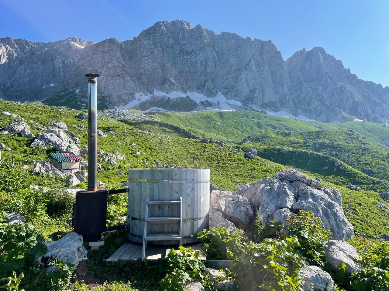 Завтрак. Свободное время до обеда. Можно искупаться в реке Белой и позагорать на солнышке. Обед в 12.00. В 13.00 выход на маршрут, не сложный переход 8 км через перевал Белореченский до перевала Черкесский. Уже здесь чувствуется цивилизация все ближе. На стоянке можно купить молоко, сыр или мацони, вкусные пышки с мёдом,а также есть теплый душ, и для особого удовольствия-бочка фурако с горячей горной водичкой под самый лучший в мире телевизор!