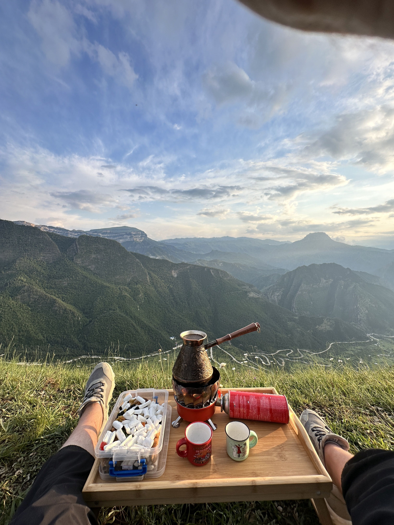Выпьем ароматный кофе с видом на ущелье и зайдем в Каменные чаши — место среди нависающих скал. После этого вернемся в гостевой дом на ужин и поделимся впечатлениями от этого дня.