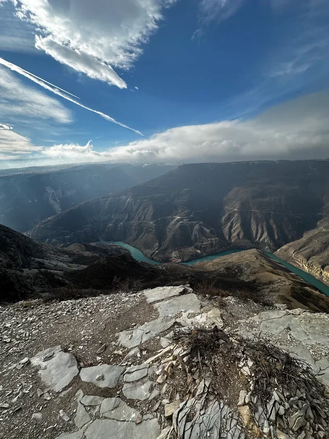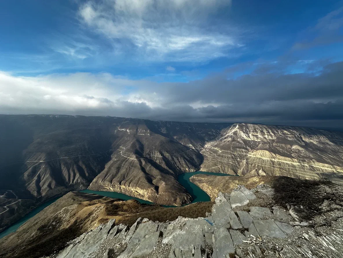 А потом смотровая на Сулакском каньоне. Да, он глубже Гранд-Каньона, и да, вы просто стоите, а внутри всё замирает.