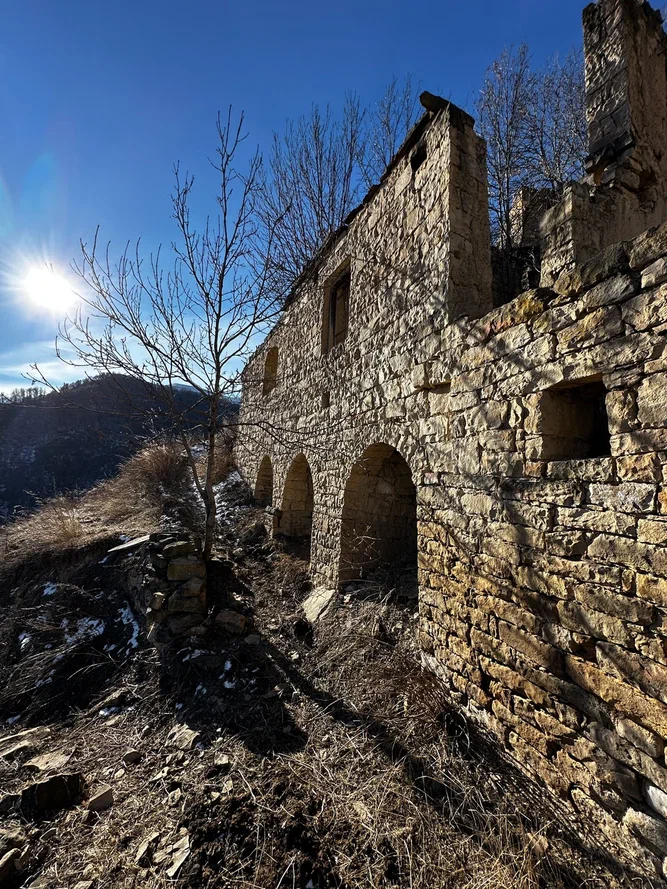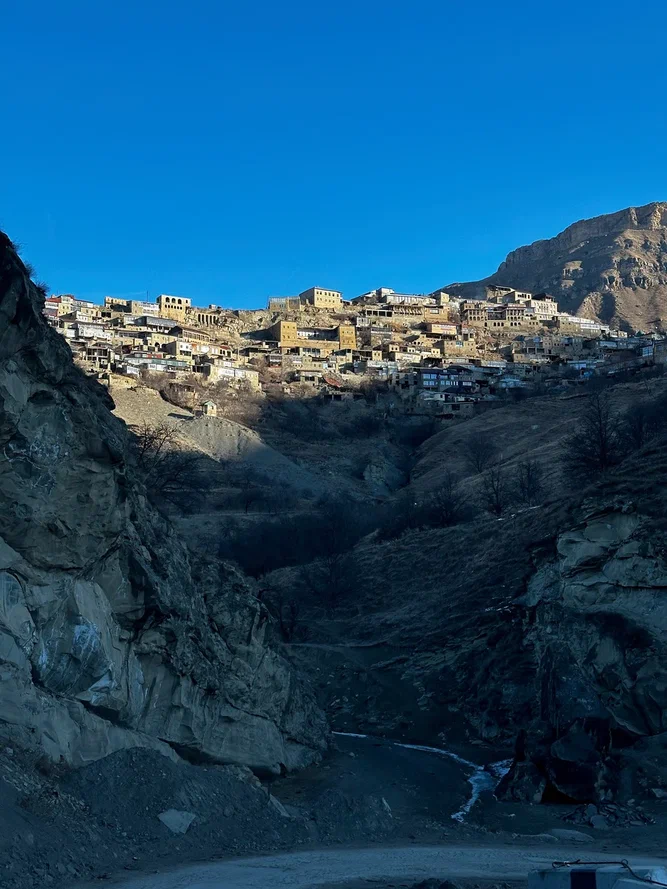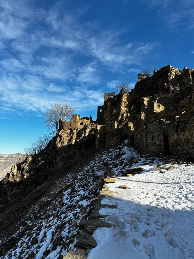 Дальше аул-призрак Гамсутль. Пешком вверх, медленно, с остановками и фото. Последний житель ушёл в 2015-м, но ощущение — будто просто все вышли по делам. Тишина, ветер, стены, и ты вдруг начинаешь слушать себя.