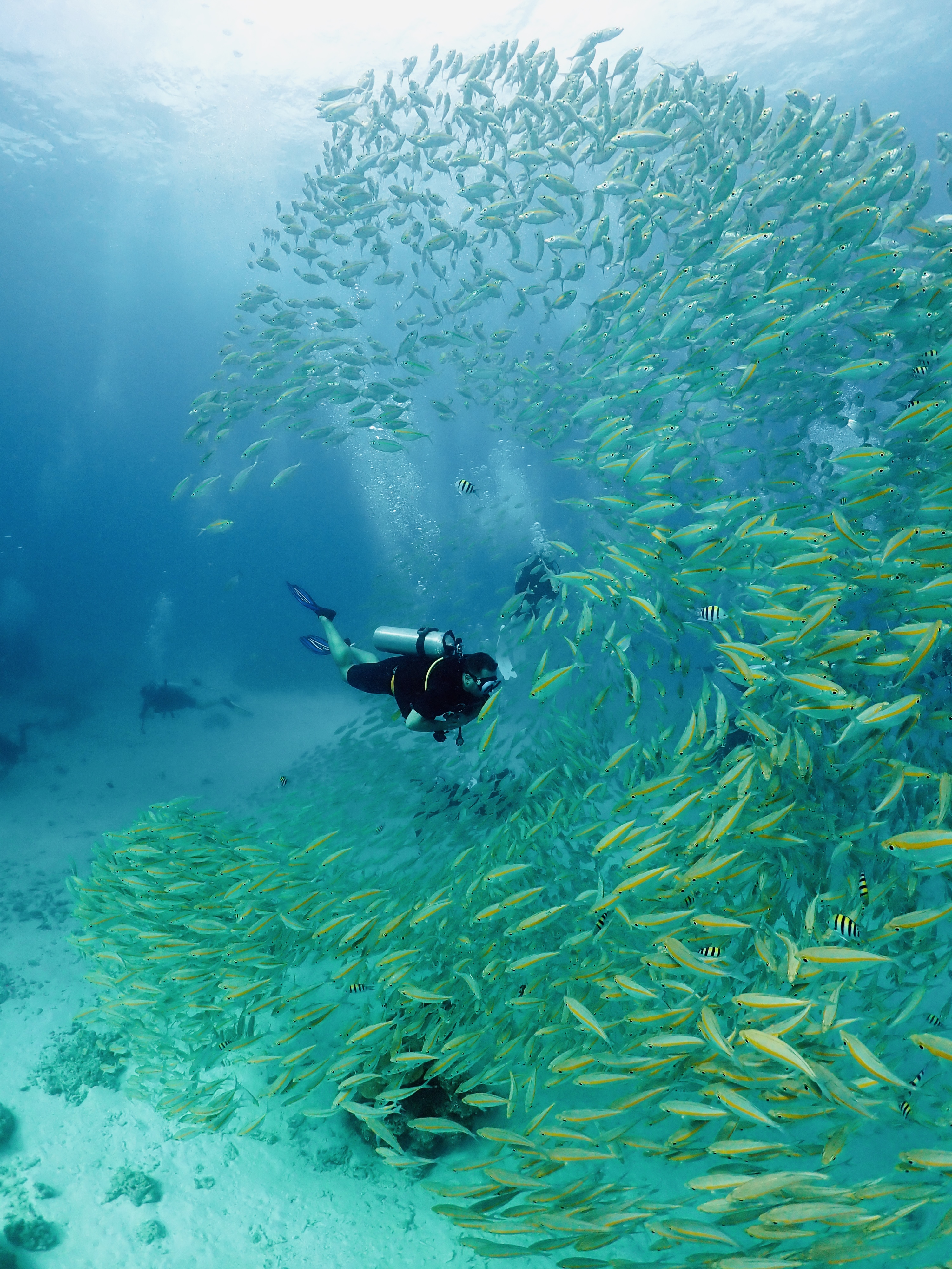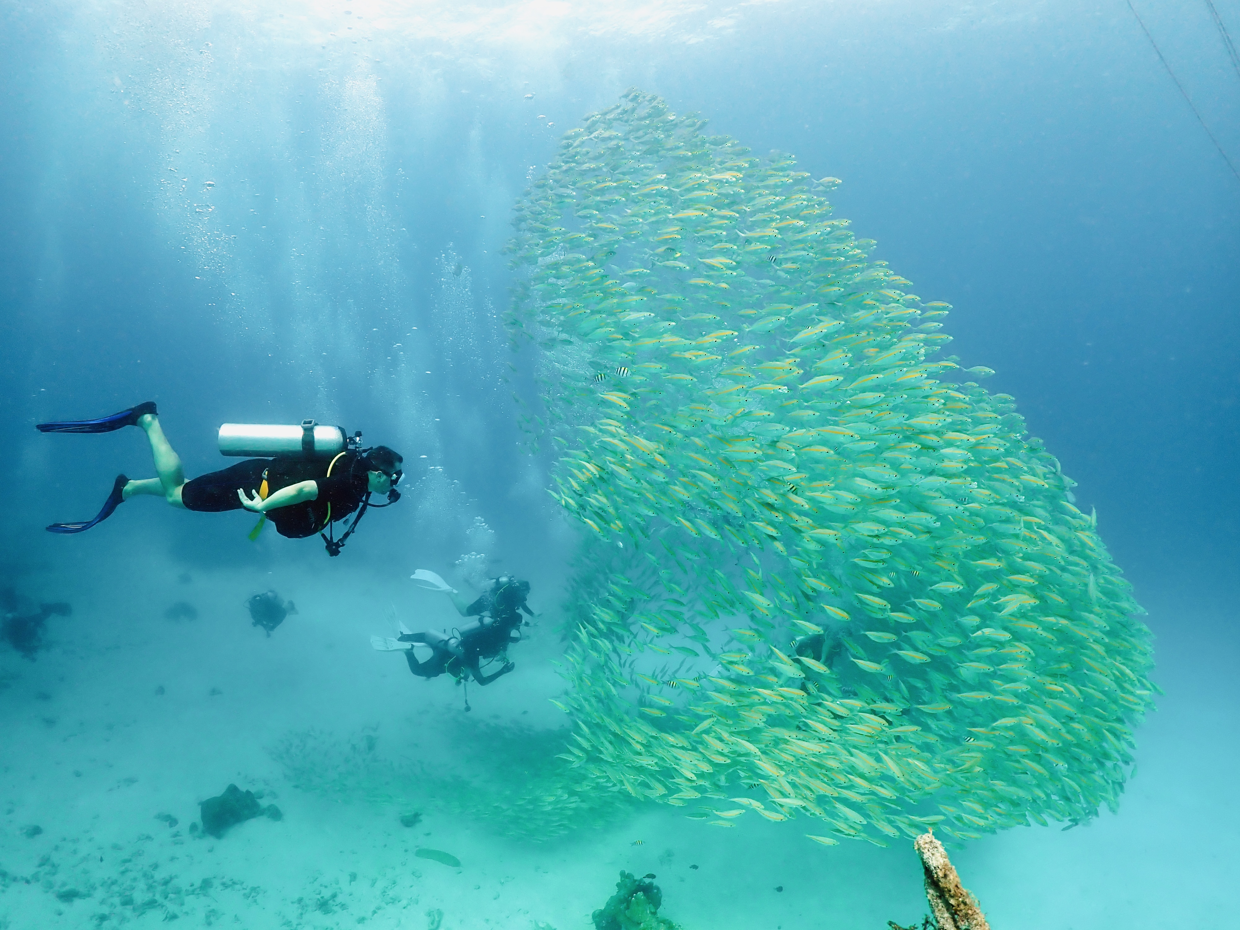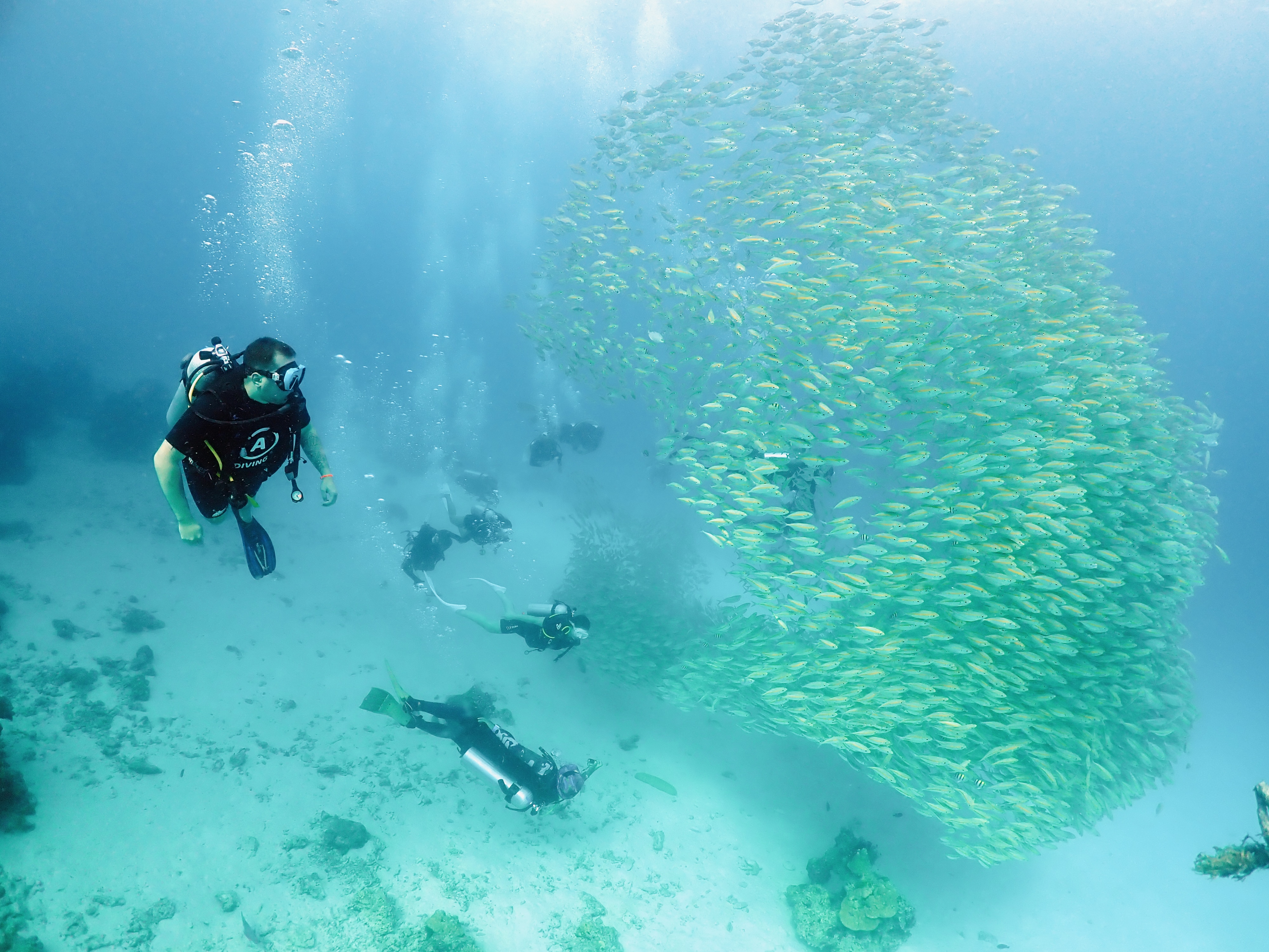 Предполагаются погружения на разных дайв-сайтах. Вместе с профессиональным дайв-инструктором, проживающим постоянно на Пхукете более 12 лет, имеющим в профессиональном портфолио сотни погружений, дополнительно сертификаты фридайвера, либо другим сертифицированным дайв-инструктором нашей компании, имеющей лицензию на ведение бизнеса в Таиланде, осуществляем погружения (стандартный минимум, входящий в стоимость обучения и необходимый для сертификации). На корабле возможно докупить дополнительное погружение на каждый из дней на море.