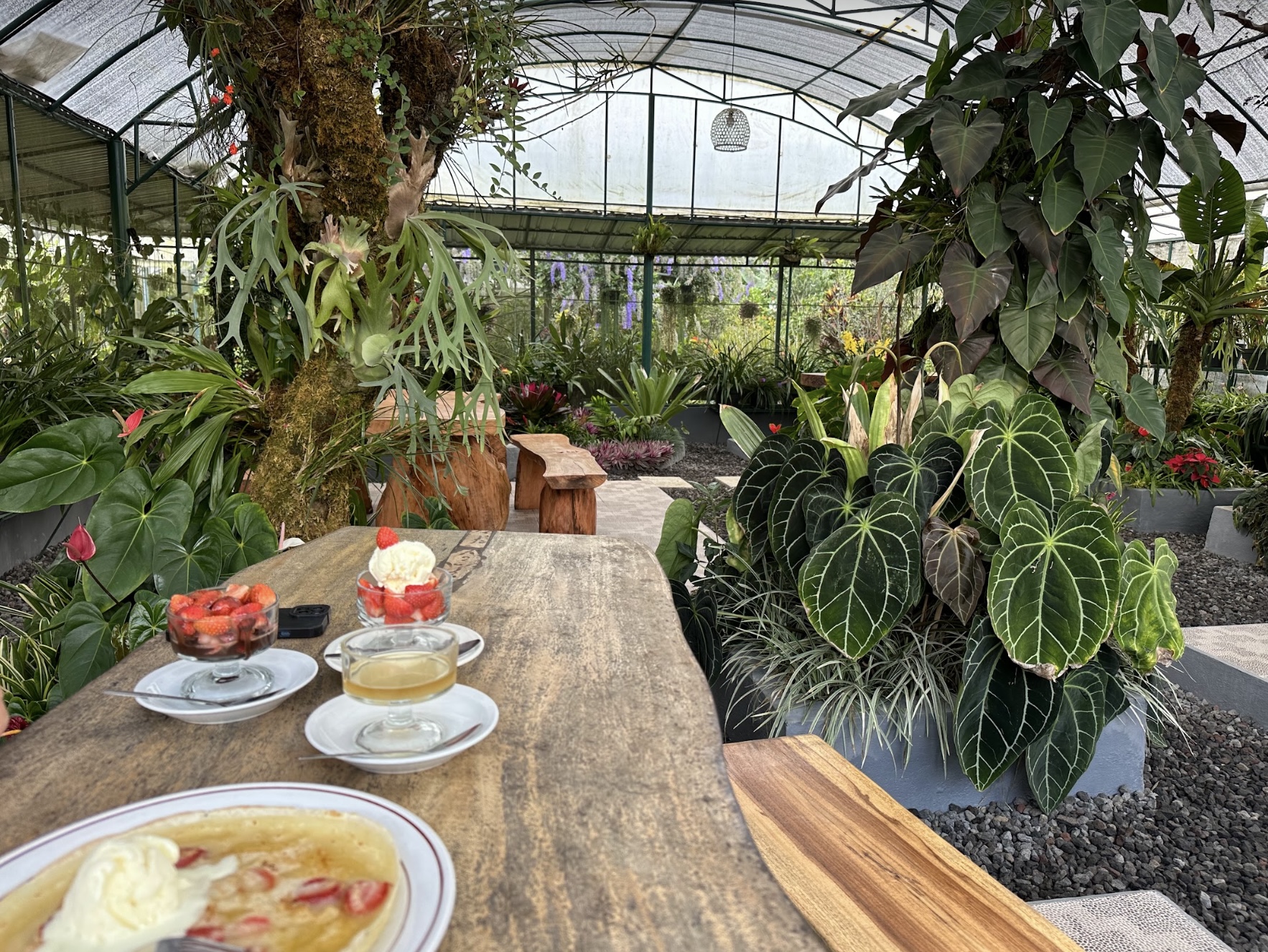 Мы заезжаем в ботанический сад, где среди зелени, птиц и цветов вас ждёт необычное клубничное меню. Очень советуем попробовать рис с клубникой — неожиданно, но невероятно вкусно.