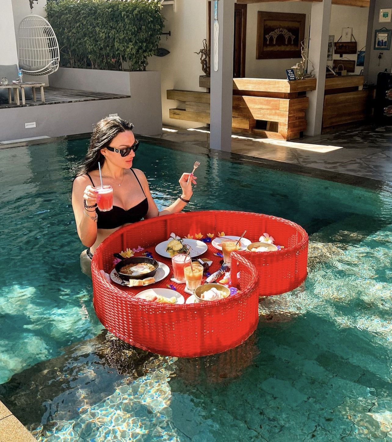 А после проведем день в модном баре с бассейном, где можно вкусно пообедать, поплавать в бассейне и позагорать!