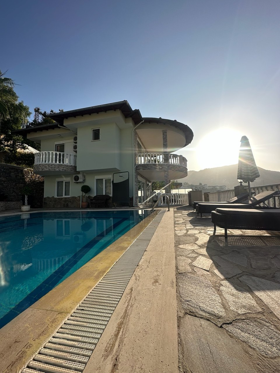 - Зона отдыха: Вокруг бассейна расположены удобные лежаки.