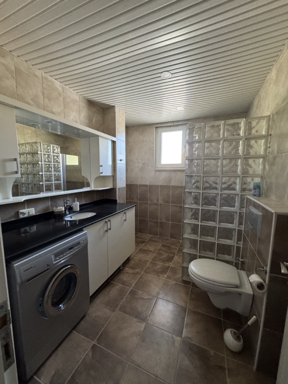 - В доме есть вся бытовая техника: стиральная машина, посудомойка, полный набор посуды.