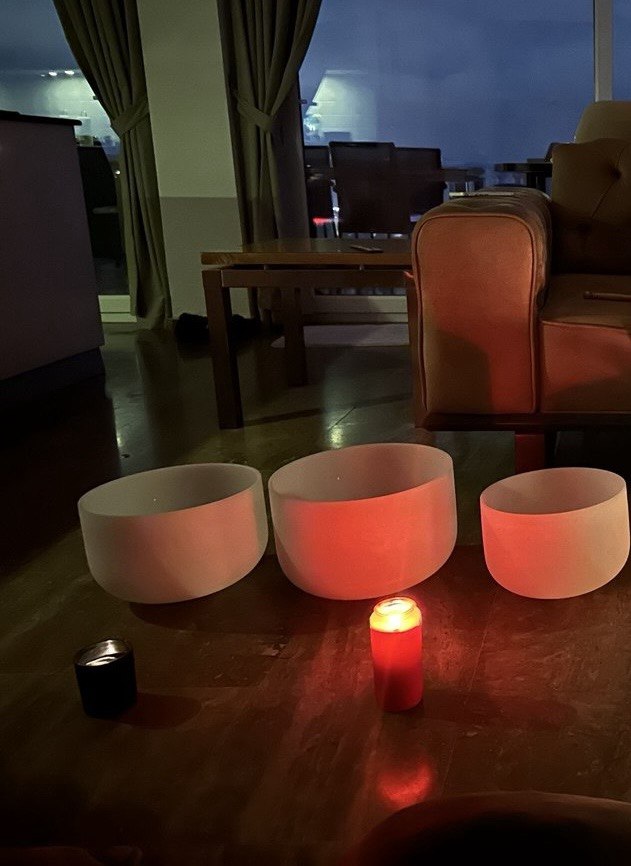 Вечер: Ужин и практика глубокого расслабления с поющими чашами.