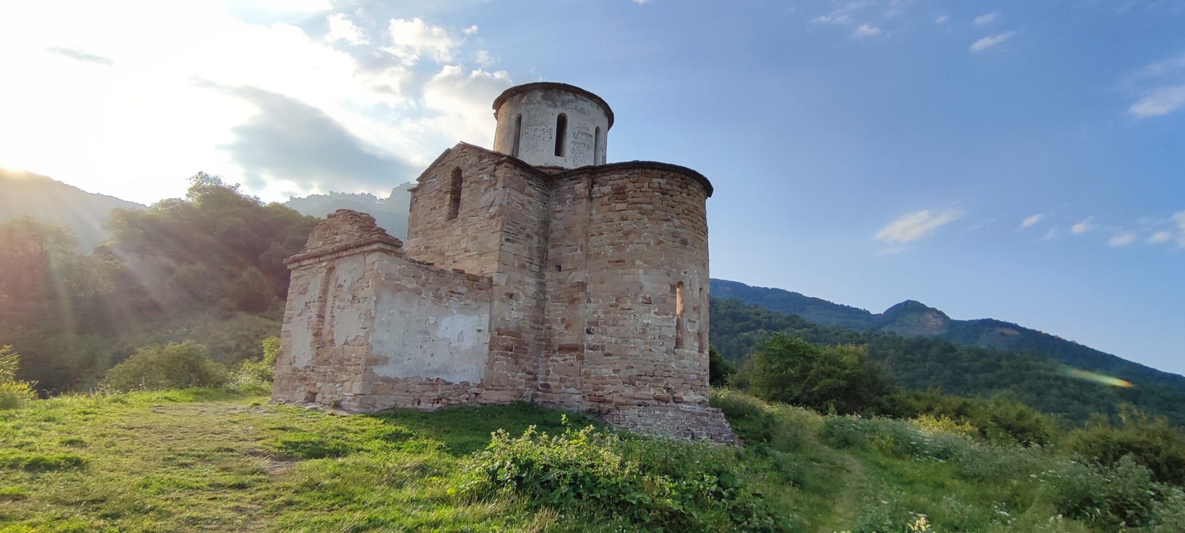 Встречаем участников и отправляемся к п. Домбай, по дороге осматриваем необычные Сырные скалы, древнейший храм аланского царства - Шоанинский, который находится на вершине горы Шоана.