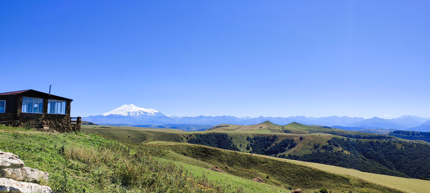 Для тех кто продолжит наше приключение, у нас приготовлена программа еще на несколько дней. Тем же кто заканчивает на этом знакомство с прекрасным Домбаем, мы организуем дополнительный экскурсионный трансфер через высокогорный перевал Гумбаши. Отсюда открывается неповторимый вид на могучий Эльбрус и остроконечные Кавказские хребты.