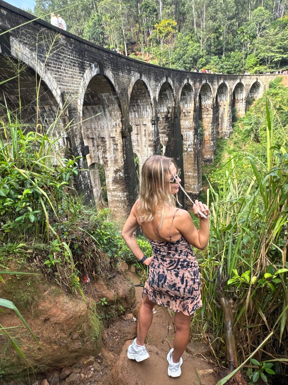 Далее предстоит небольшой подъем на Малый Пик Адама. Прогулка через чайные плантации и тропические тропы занимает около получаса, но с вершины открываются фантастические панорамы: холмы, леса и бесконечные чайные поля. После спуска вы отправляетесь к Девятиарочному мосту — архитектурному чуду среди зеленых холмов. Следующая часть дня — поездка на поезде в Нувара-Элию. Поезд медленно продвигается через туманные ущелья, плантации чая и небольшие деревушки, раскрывая каждый раз новые виды, словно ожившие картины.