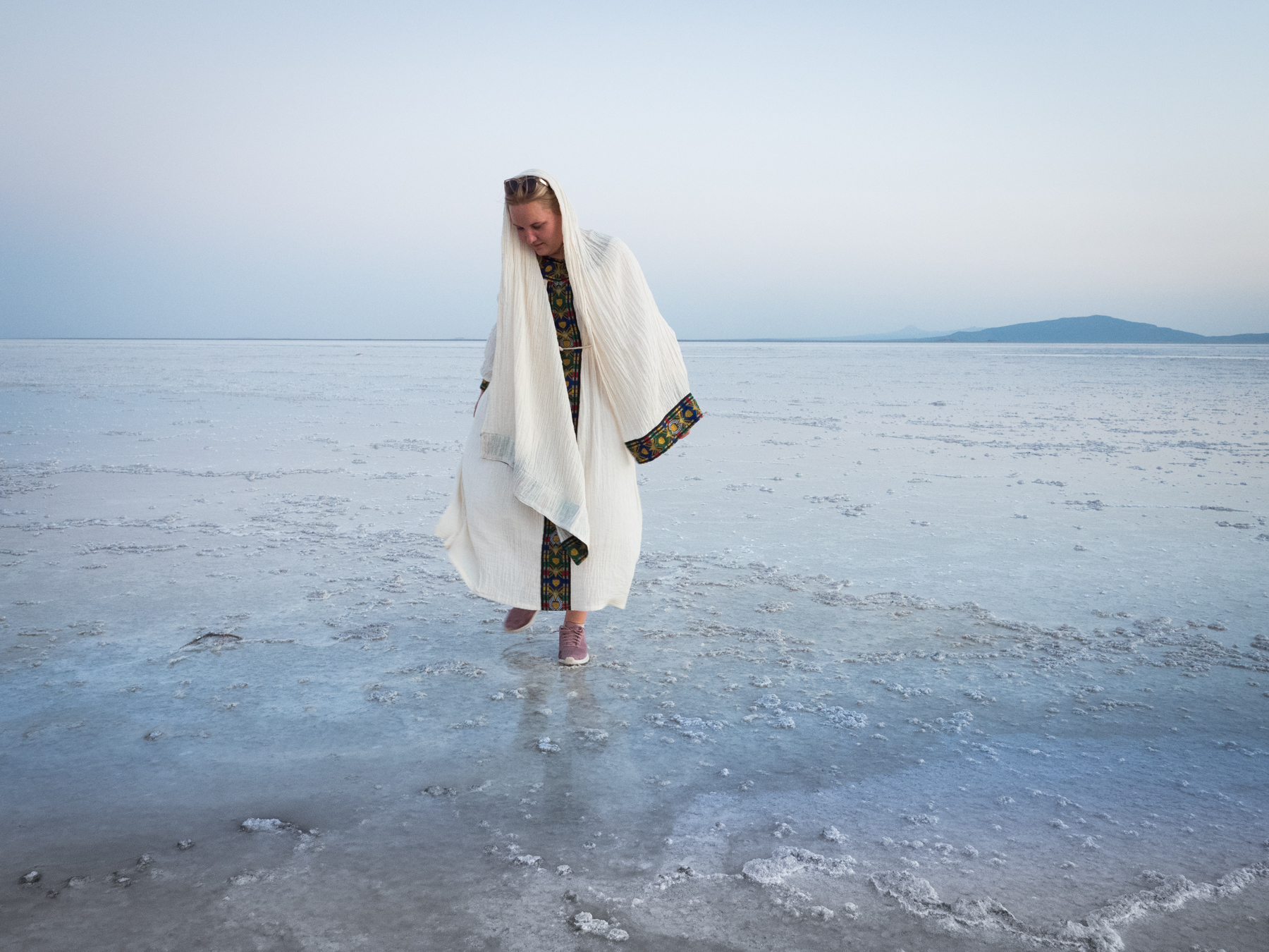 Ассали - огромный солончак, на белоснежной глади которого получаются отличные фотографии! В центре солончака находится прорубь - небольшой участок воды изумрудного оттенка, где можно искупаться - что мы обязательно сделаем!