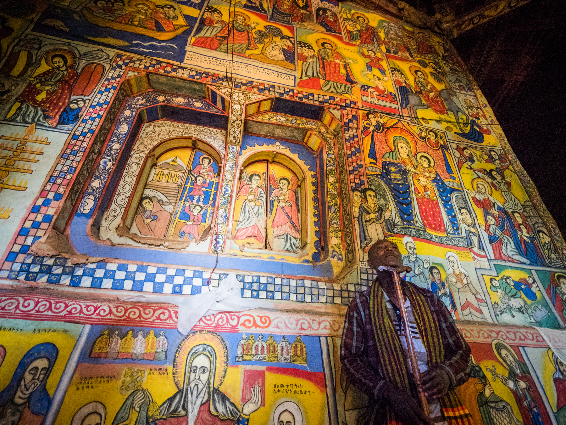 Монастыри таятся за прибрежными зарослями и порой могут быть замечены только при непосредственном приближении. Нас встречают темнокожие священники - в укладе их смиренного существования не менялось практически ничего уже несколько веков. Стены монастырей полностью укрыты фантастическими фресками, излагающими истории Священного Писания порой на непривычный нам лад. Фрески могут показаться наивными, но в них значительно меньше случайного, чем думается при поверхностном ознакомлении. Религиозная эфиопская живопись преисполнена символов, суть которых объяснит наш компетентный проводник.
