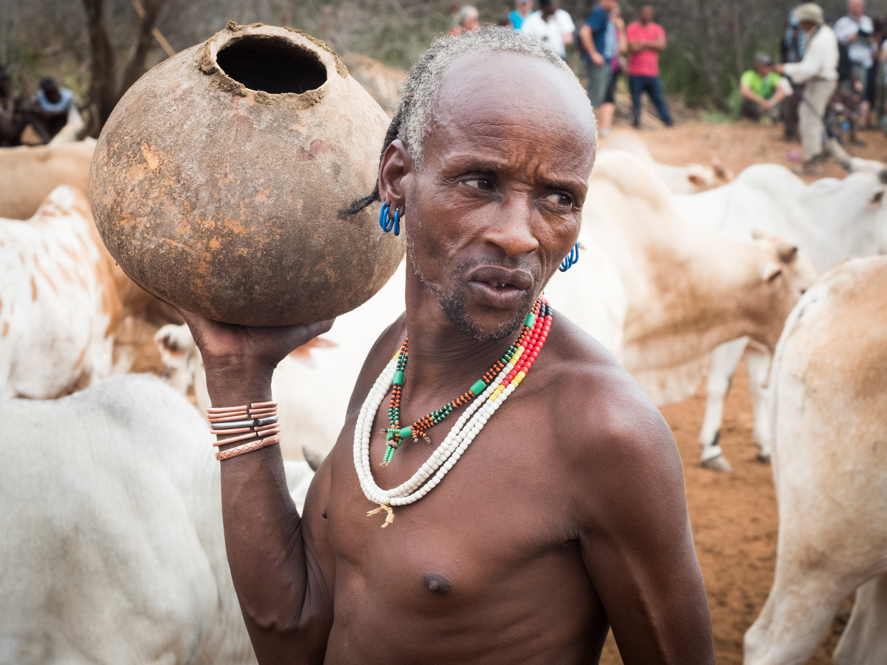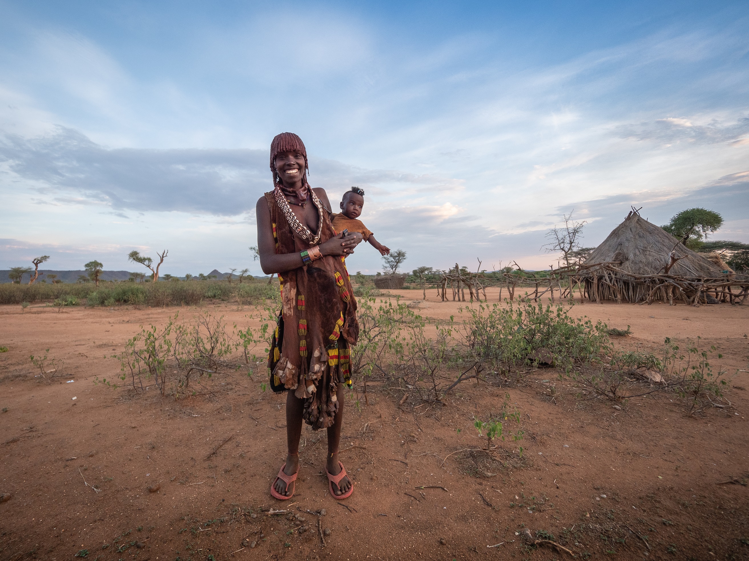 Племя, на землях которого расположено поселение Турми - хамар и к ним мы отправляемся с утра. Перепутать хамар с представителями других племен невозможно благодаря некоторым характерным особенностям. Женщины заплетают волосы в мелкие косички, перемешивая с глиной. На плечах - одежда из кож и украшения, многочисленные ожерелья из ракушек они надевают на свои обнаженные торсы, частично скрывая свои изящные тела. Для украшений подходят и более современные составляющие - особенно высоко ценятся китайские часы и алюминиевые крышки от бутылок из-под лимонада.