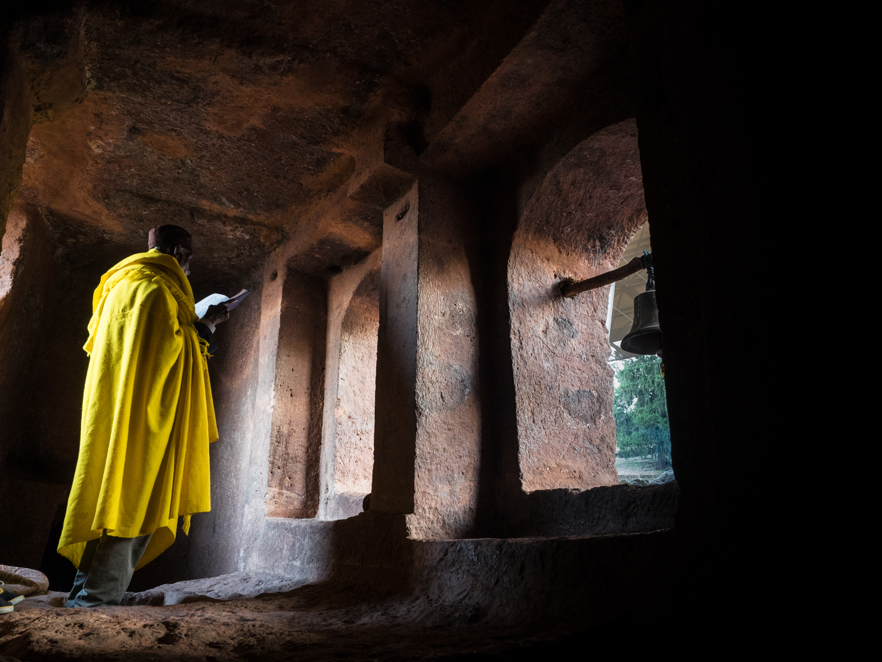 Мы вливаемся в поток паломников и проходим тоннелями, вдыхая запах свеч из пчелиного воска, созерцая нетленные фрески и проникаясь бытом коптских христиан, бережно сохраняющих религиозное наследие в этом Африканском Иерусалиме. Лалибэла - не только центр паломничества, но и религиозно-образовательный центр страны. Молодые послушники отправляются сюда, чтобы получить престижную профессию священнослужителя. Днем на полянах неподалеку от церквей они нараспев заучивают псалмы на древнеамхарском языке Геез.