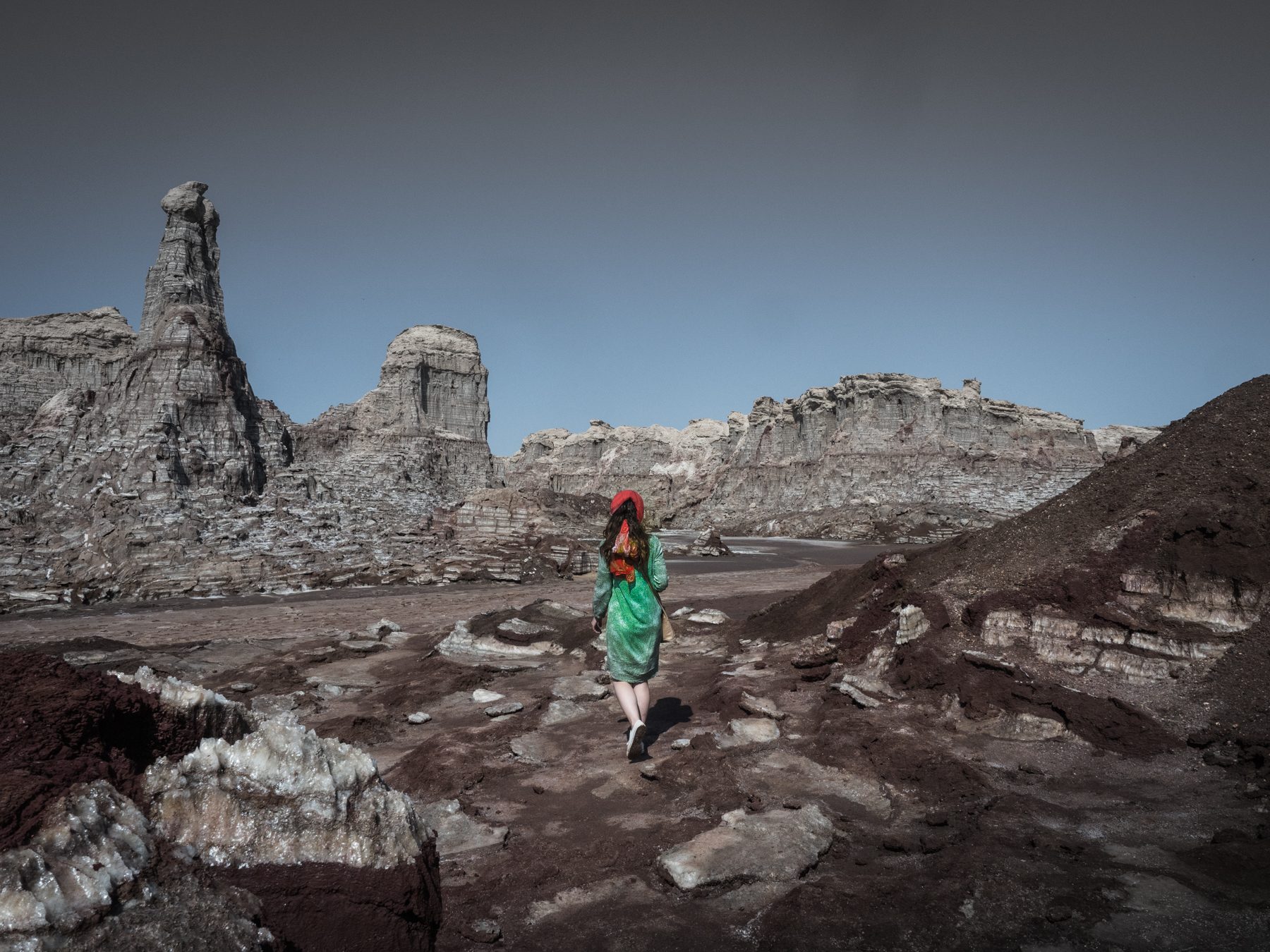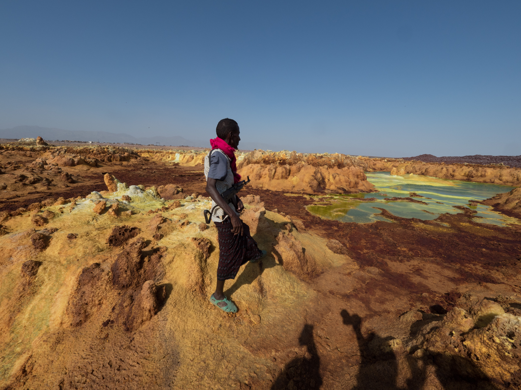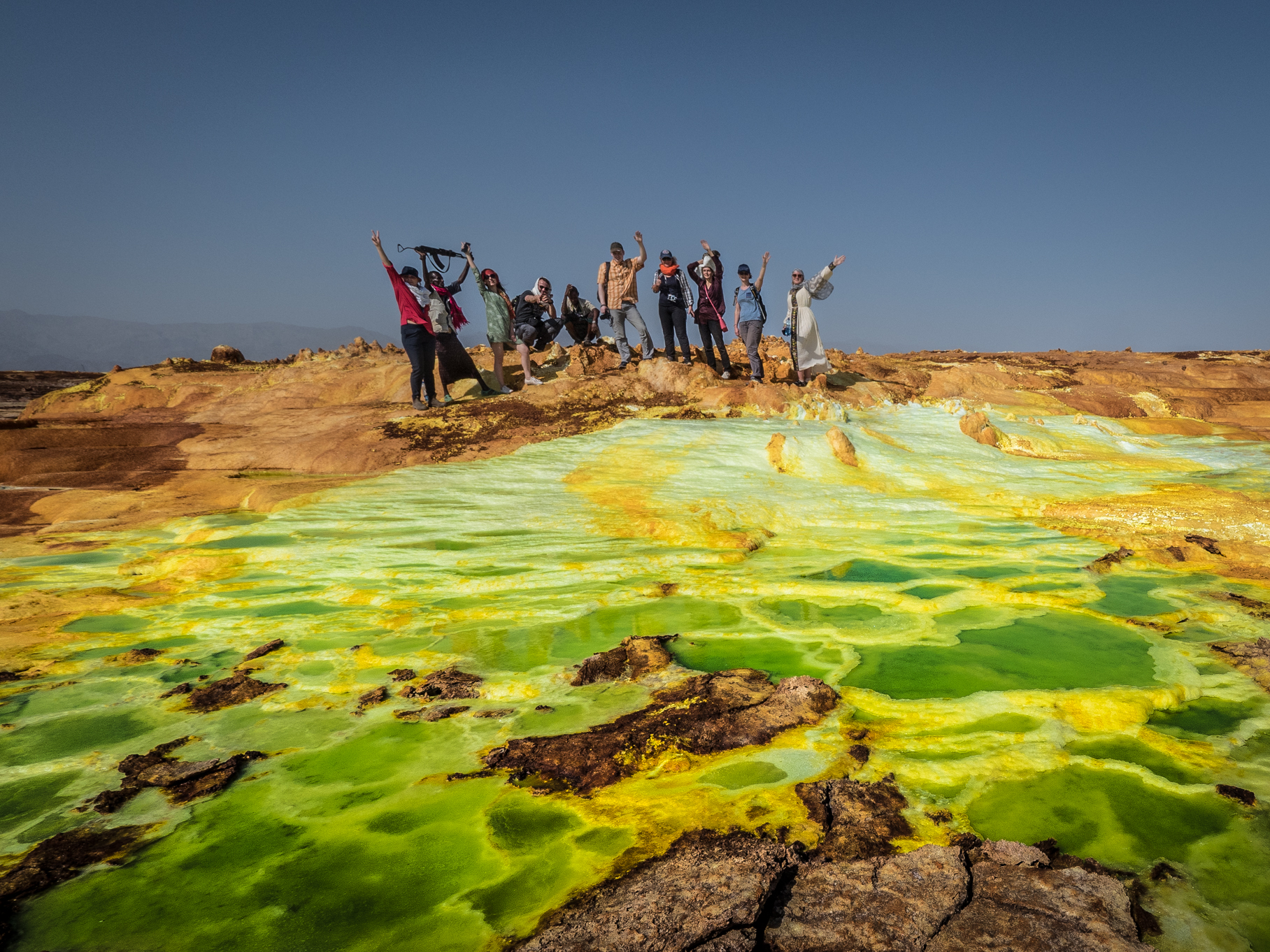 После отправимся к региону Даллол. Поразительные серные озера, кажется, попали на нашу планету откуда-то с Венеры. Это одно из самых жарких мест на планете с самой высокой среднегодичной температурой на Земле - более 34 градусов по Цельсию. Даллол также самое низкорасположенное место в Африке - 116 метров ниже уровня моря. Также посетим край серных столбов - пейзажи словно созданы в качестве декораций для фантастического фильма.