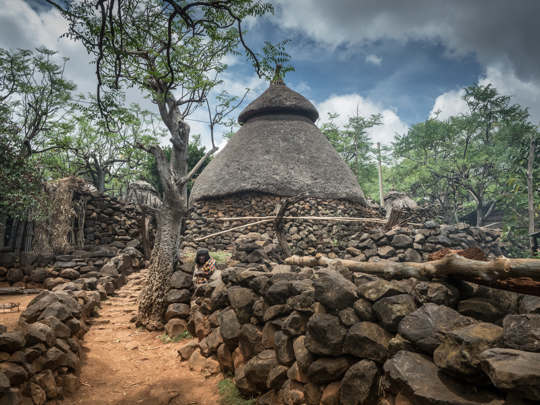Три извилистые стены из крупных валунов - одна внутри другой, окружают эту деревню, отгораживая ее от внешнего мира. Улицы образованы стенами дворов. Это не простые заборы - могучие высохшие на ветру коряги переплетаются в хитрые орнаменты. Прогулка по Консо - путешествие по зачарованному миру. Три вложенных друг в друга района - чем ближе к центру, тем старше и респектабельнее район.