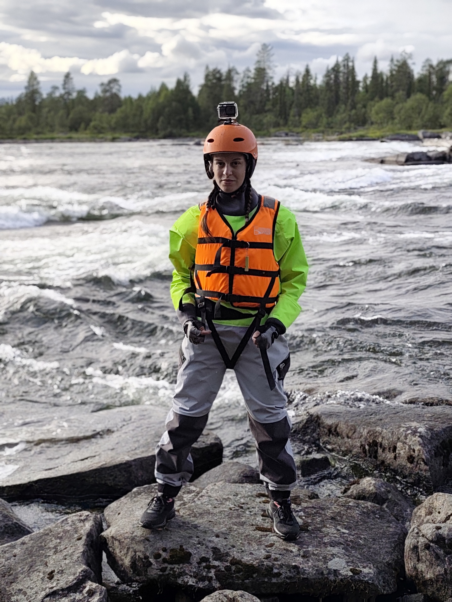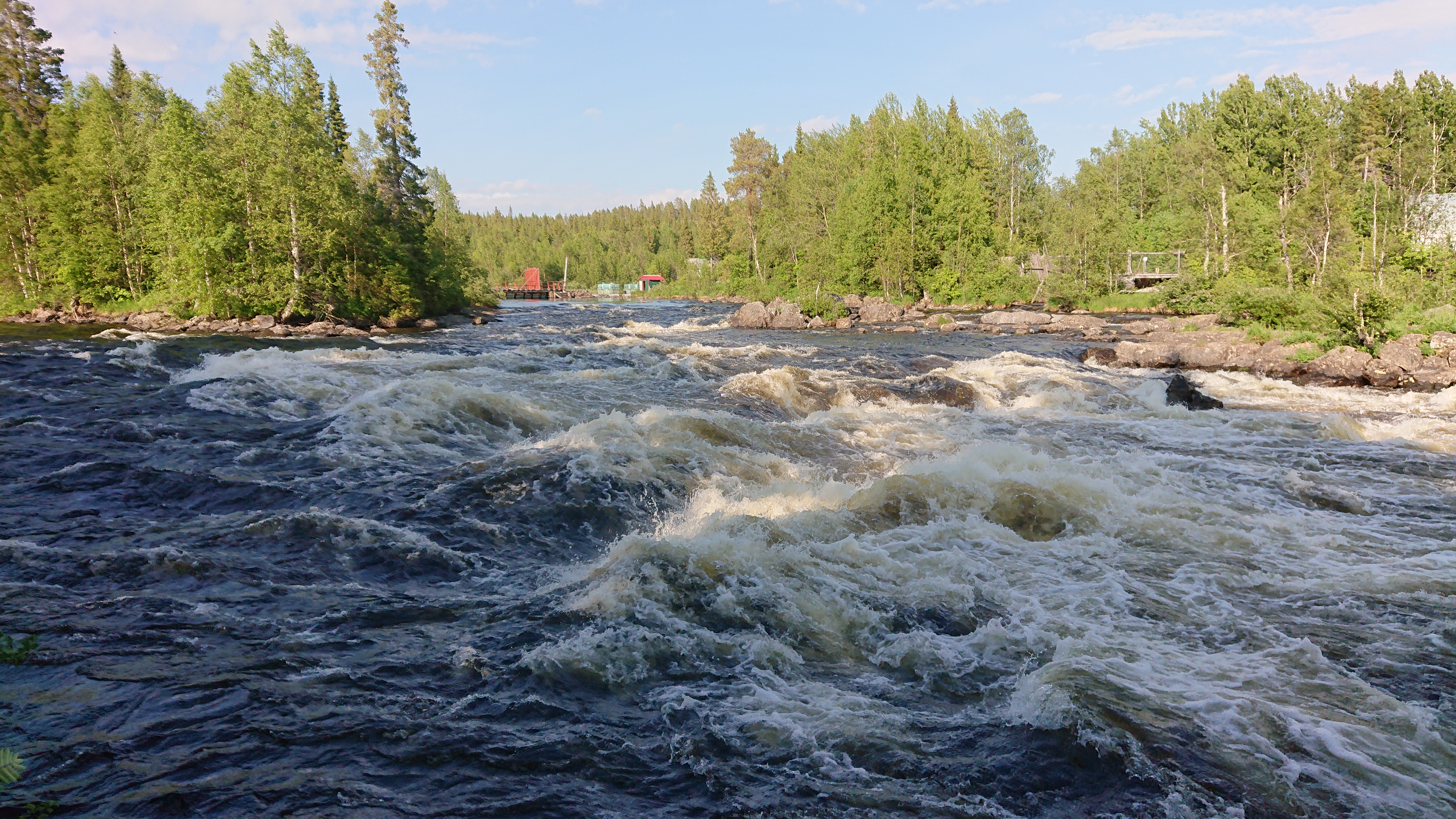 Встречаемся на вокзале жд станции Апатиты. Далее трансфер доставляет нас (1 час) к мосту через р. Умба, здесь и будет стапель. Проходим инструктаж, разбиваемся на экипажи и начинаем сплав. Первый крутой порог нам встретится примерно через 8 км Падун (3-4 к.с.). Осматриваем его с берега, прорабатываем траекторию прохода и без труда преодолеваем, выставив страховку и снимая видео. Вторым порогом будет Верхний Капустный (2 к.с.), который располагается ещё через 8 км ниже, в протоке между Верхним и Средним Капустными озёрами. После него встаём на ночёвку с походной баней.